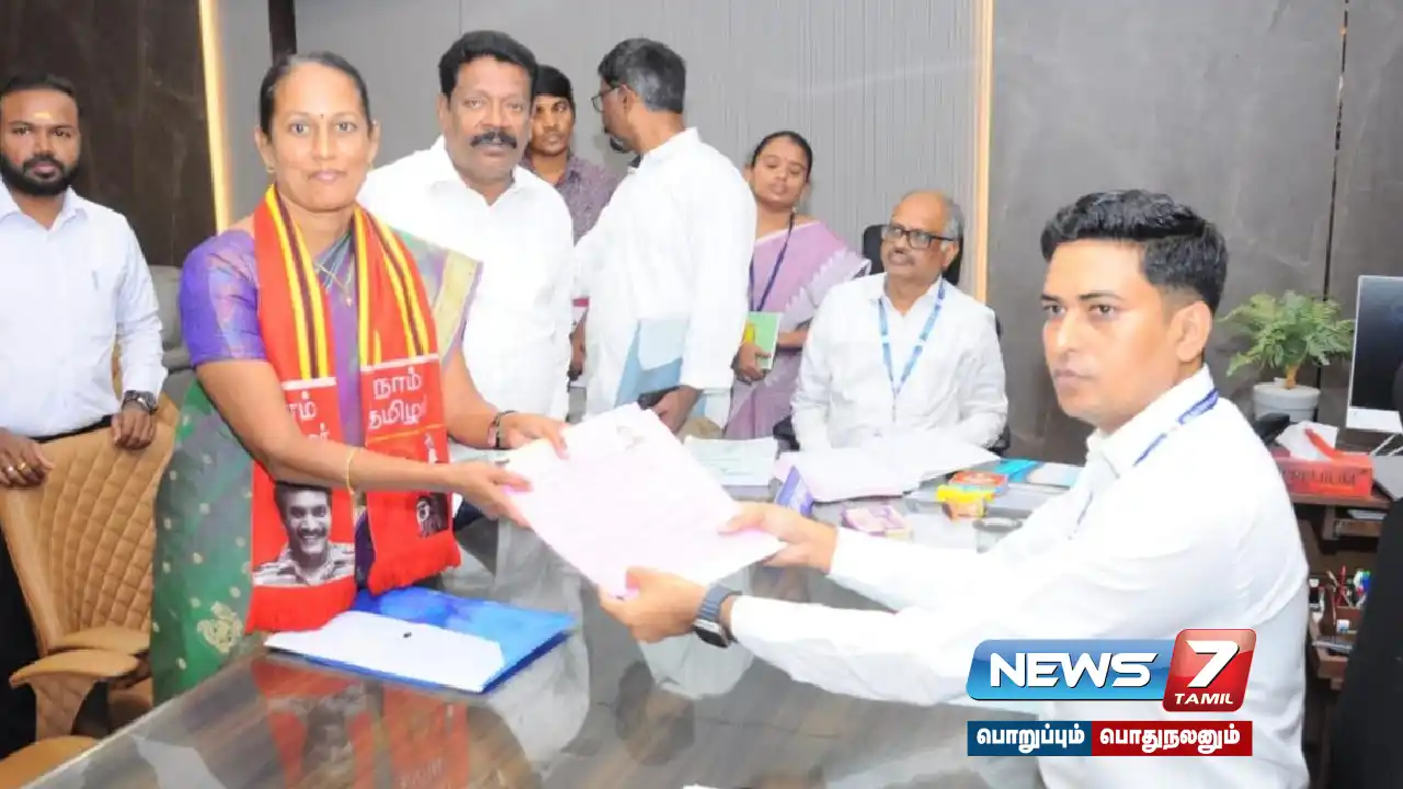ஈரோடு கிழக்கு தொகுதியில் போட்டியிட வேட்புமனுத்தாக்கல் செய்ய இன்று (jana. 17) கடைசி நாள் ஆகும். இந்த நிலையில் நாம் தமிழர் கட்சியின் சார்பில் போட்டியிடும் வேட்பாளர் சீதாலட்சுமி, தேர்தல் நடத்தும் அலுவலர் மணீஷிடம் தனது வேட்புமனுவைத் தாக்கல் செய்தார்.