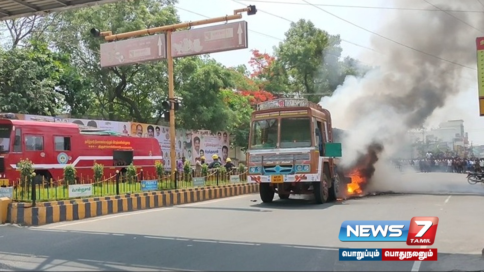 ஆந்திர மாநிலம் சித்தூரில் இருந்து திருச்செங்கோட்டிற்கு கிரானைட் கல் ஏற்றி வந்த லாரி நடு வழியில் திடீரென தீப்பற்றி எரிந்ததால் பரபரப்பு ஏற்பட்டது. அதிர்ஷ்டவசமாக ஓட்டுநர் மற்றும் உரிமையாளர் கீழே குதித்தால் உயிர்ச்சேதம் தவிர்க்கப்பட்டது.