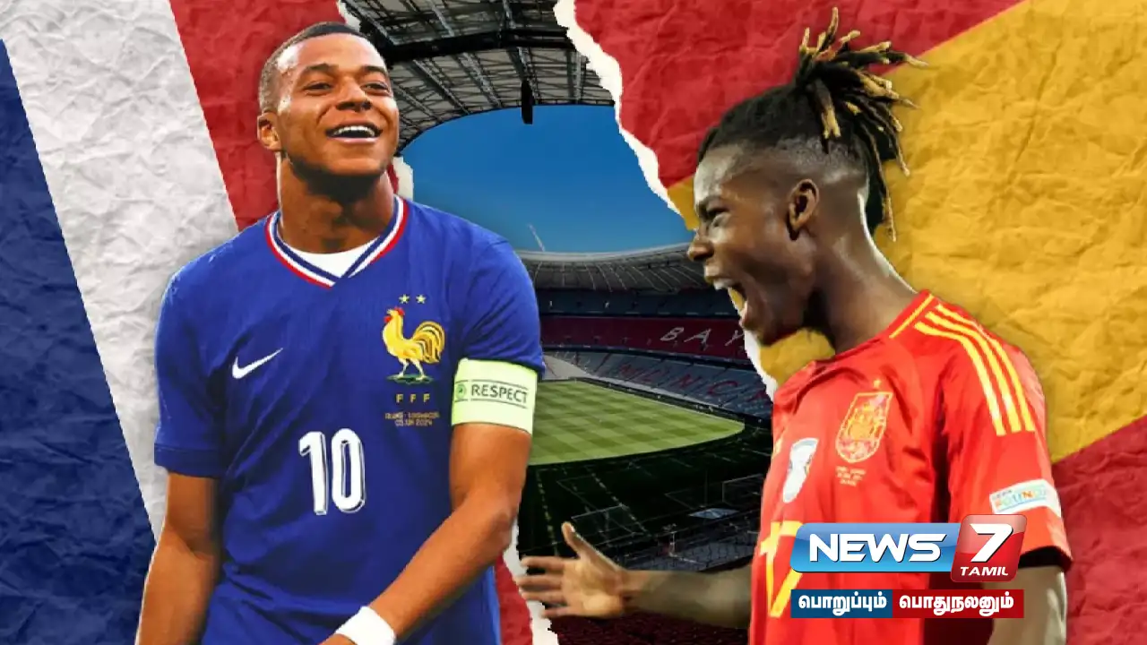 யூரோ 2024 கால்பந்து போட்டியின் முதல் அரையிறுதியில் ஸ்பெயின் மற்றும் பிரான்ஸ் அணிகள் இன்று மோதுகின்றன.