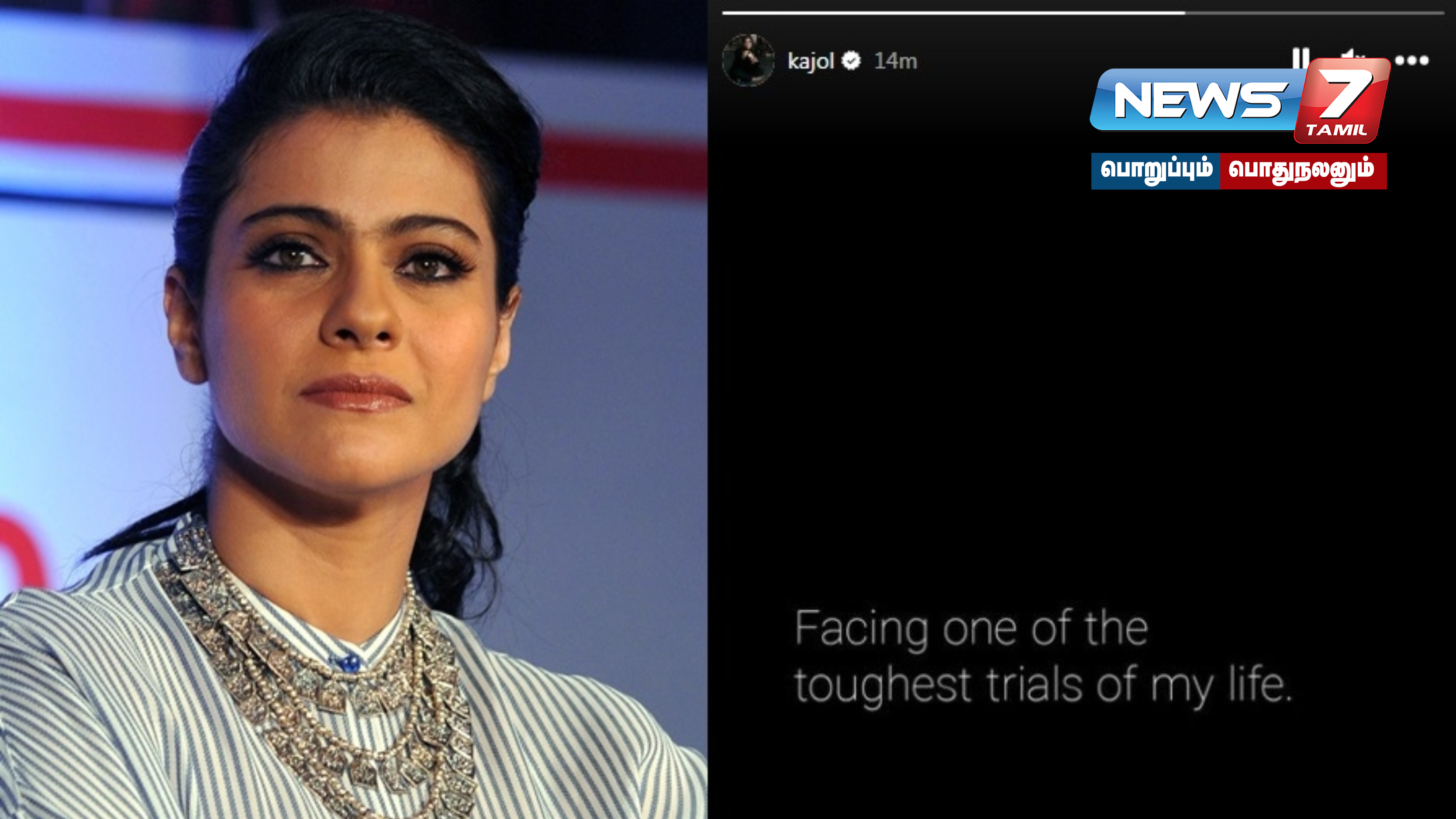 இந்நிலையில், நேற்று திடீரென சமூக வலைத்தளங்களில் இருந்து விலகுவதாக கஜோல் அறிவித்துருந்தார். இதுகுறித்து டுவிட்டர் மற்றும் இன்ஸ்டாகிராமில் அவர் வாழ்க்கையின் கடினமான சூழலில் இருக்கிறேன் என குறிப்பிட்டிர்ருந்தார்.