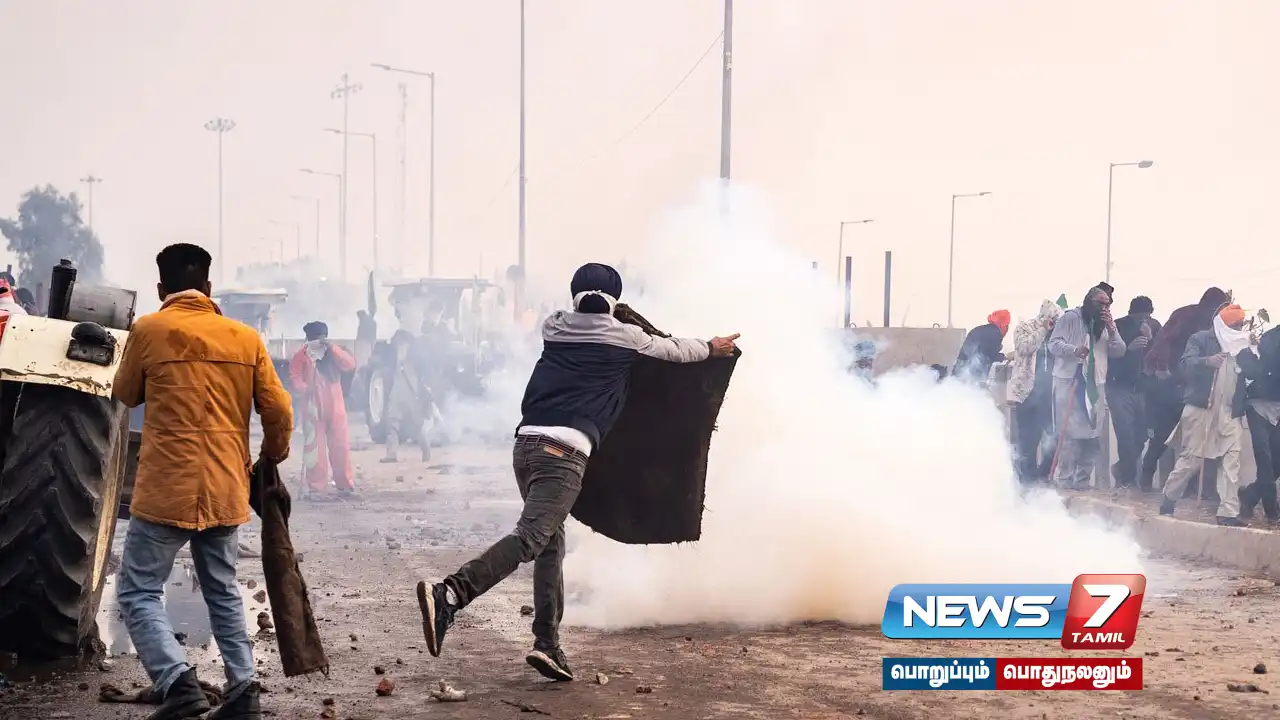ஷம்பு எல்லையில் போராடும் விவசாயிகளை கலைக்க கண்ணீர் புகை குண்டுகள் வீசப்பட்டன.