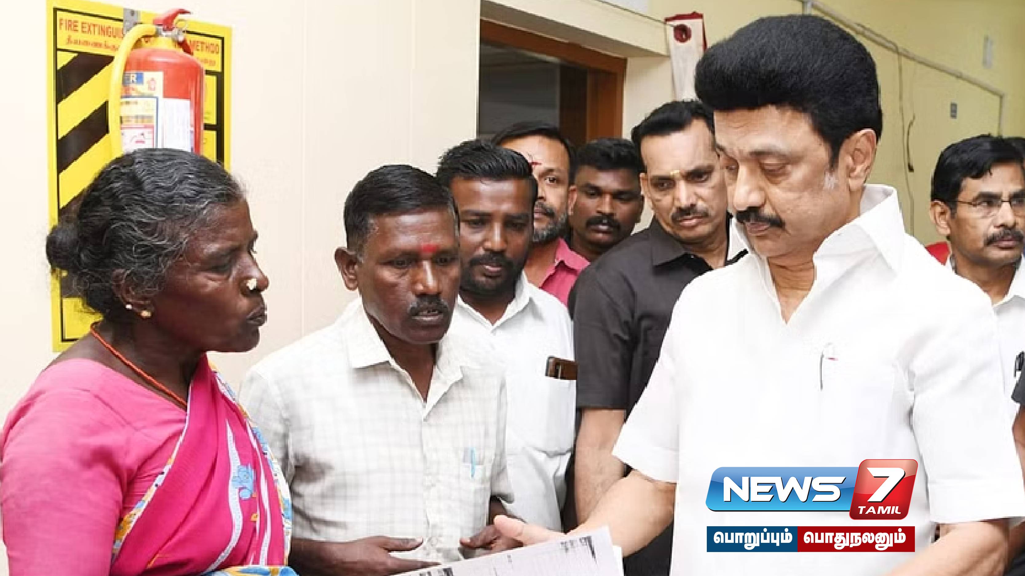 தொடர்ந்து அங்கு இருந்த பொதுமக்களிடமும் பேசிய முதலமைச்சர் மு.க.ஸ்டாலின் அவர்களின் குறைகளை கேட்டறிந்து, அவர்களிடம் இருந்து மனுக்களை பெற்றுக் கொண்டார். அப்போது ஒரு மூதாட்டி ராணுவத்தில் இருந்து ஓய்வு பெற்ற தனது கணவர் இறந்த நிலையில் தாம் வசிக்கும் இடத்திற்கு பட்டா வழங்க வேண்டும் என மனு அளித்தார். அதை பெற்றுக் கொண்ட முதலமைச்சர் உடனடியாக நடவடிக்கை எடுக்கப்படும் என உறுதியளித்தார்.