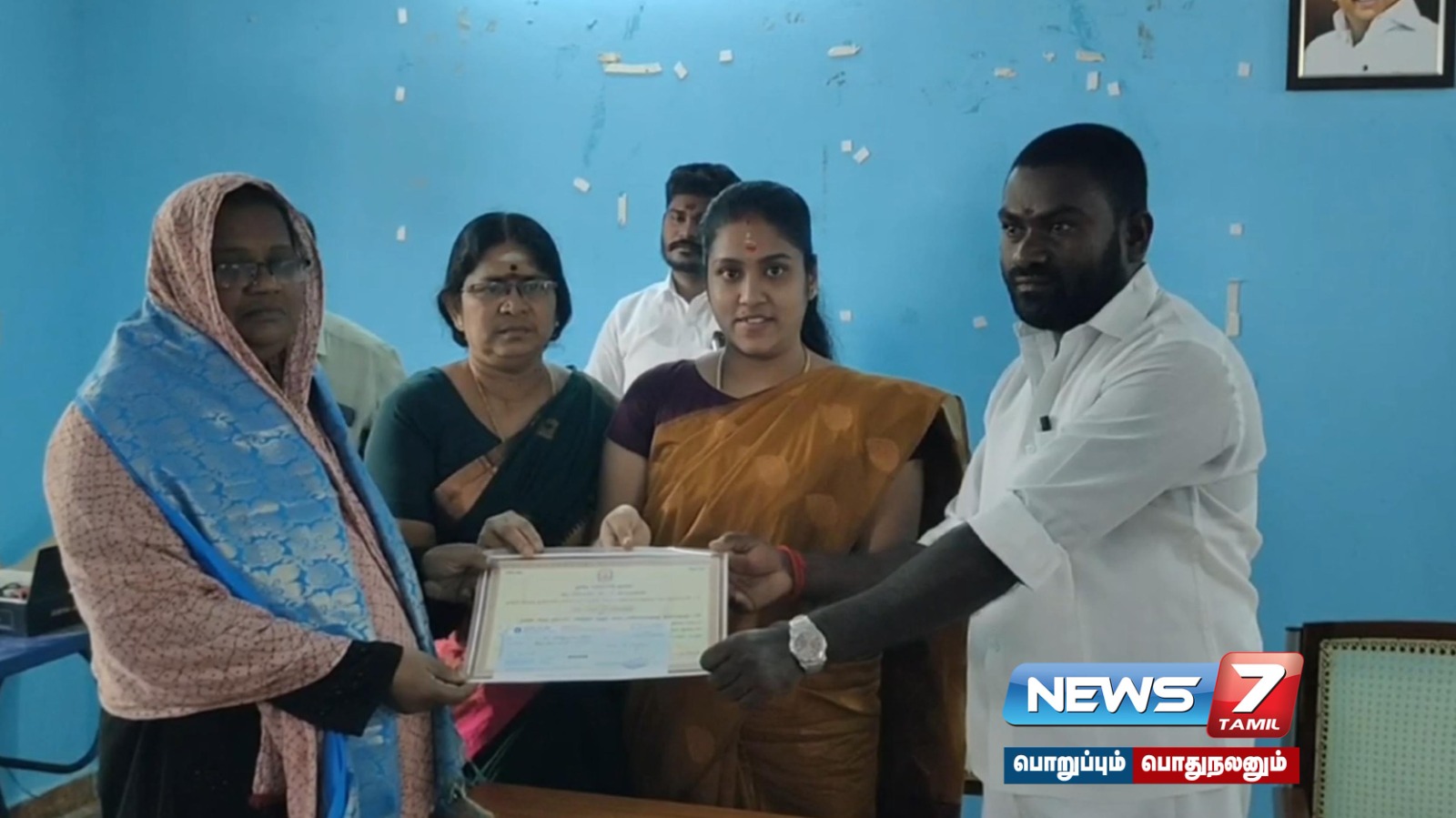அதனை தலைவர் சரண்யா செந்தில்நாதன் வட்டார வளர்ச்சி அலுவலர் ஹேமலதா ஆகியோர் ஊராட்சி ஒன்றிய உதவியாளர் அப்துல்லா பீவியிடம் வழங்கி கௌரவப்படுத்தினர்.