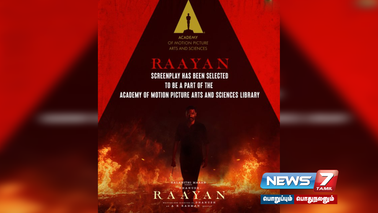தனுஷ் இயக்கி நடித்துள்ள ‘ராயன்’ திரைப்படத்தின் திரைக்கதை ஆஸ்கர் அகாடமியின் நூலகத்தில் இடம்பெற தேர்வாகியுள்ளதாக படக்குழு அறிவித்துள்ளது.