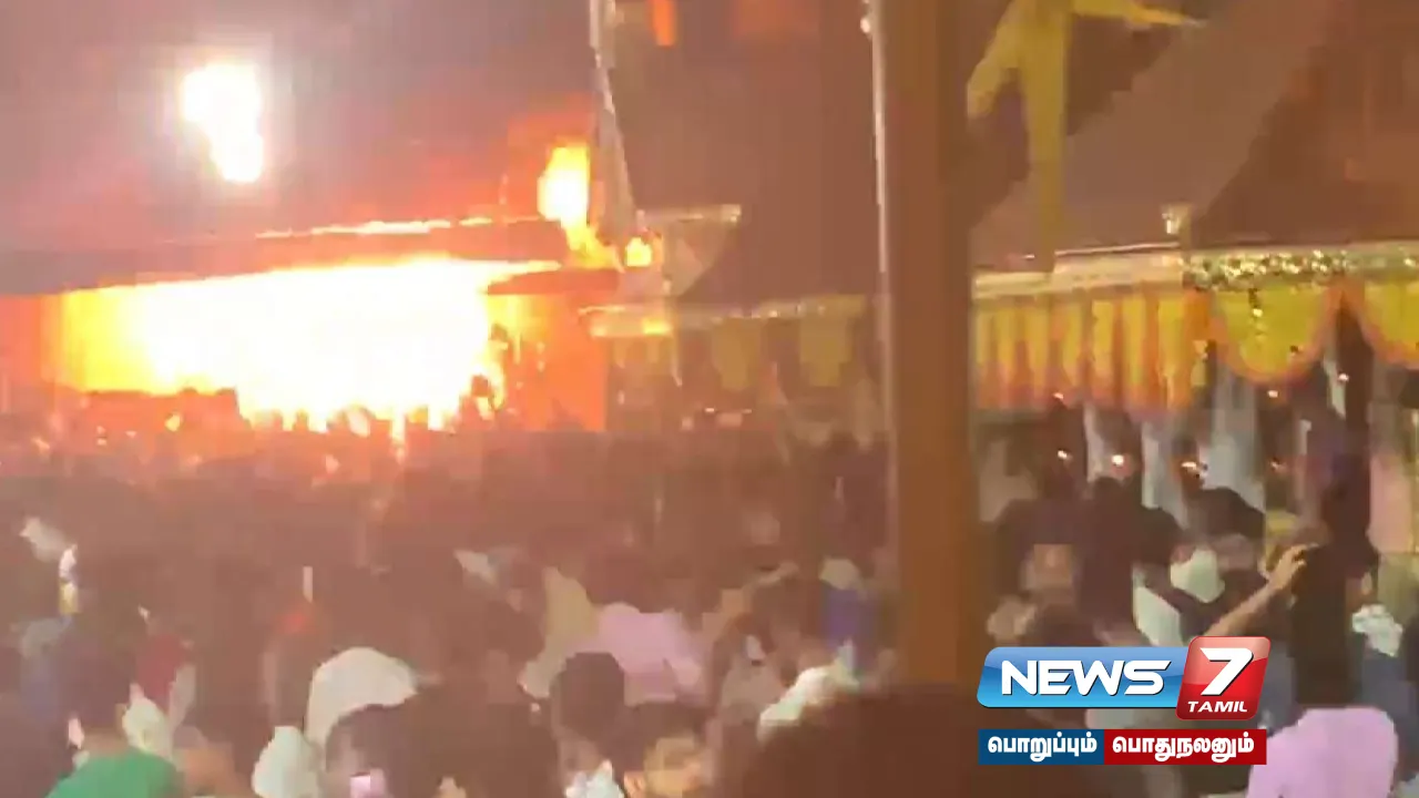 வாணவேடிக்கையின் போது குழந்தைகள், பெரியோர்கள் என ஏராளமானோர் கோயில் வளாகத்தில் திரண்டிருந்தனர். அப்போது திடீரென பட்டாசுகள் மொத்தமாக வெடித்ததில் பெரிய தீச்சூவாலை ஏற்பட்டுள்ளது. இதனைப்பார்த்து பயந்துபோன மக்கள் அங்கிருந்து ஓடத் தொடங்கியுள்ளனர். பட்டாசுகள் வைக்கப்பட்டிருந்த கட்டிடத்தின் சுற்றுச்சுவர் அருகே ஏராளமானோர் இருந்தனர். அவர்களே படுகாயமடைந்தனர். பலர் ஓடும்போது கீழே விழுந்து காயம் அடைந்ததாகவும் அப்பகுதி மக்கள் கூறுகின்றனர்.