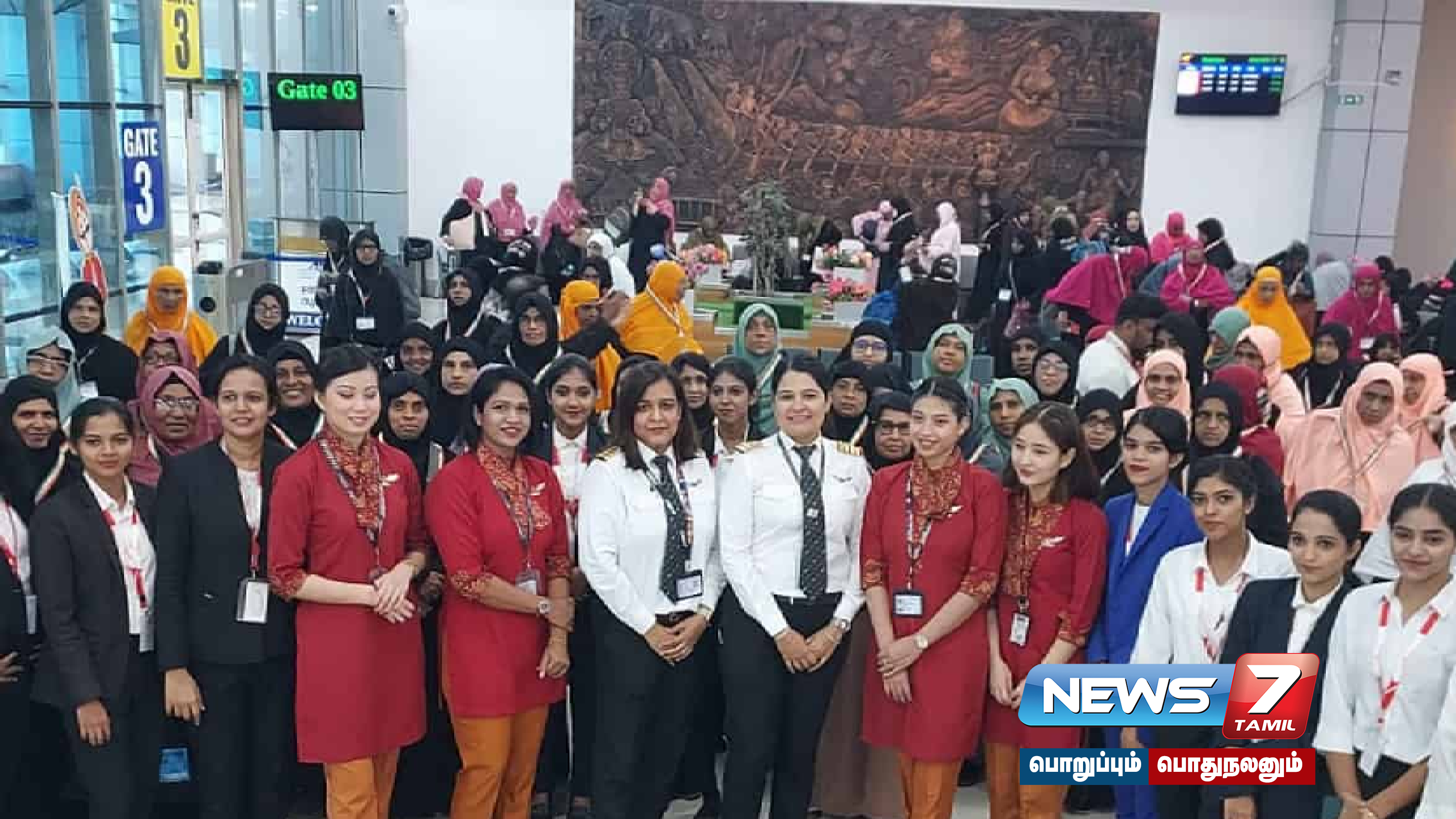 இந்தியாவில் இருந்து முதன்முறையாக பெண் யாத்ரீகர்கள் மட்டும் ஹஜ் பயணம் மேற்கொள்ளும் முதல் விமானம் ஜெட்டா சென்றடைந்தது.