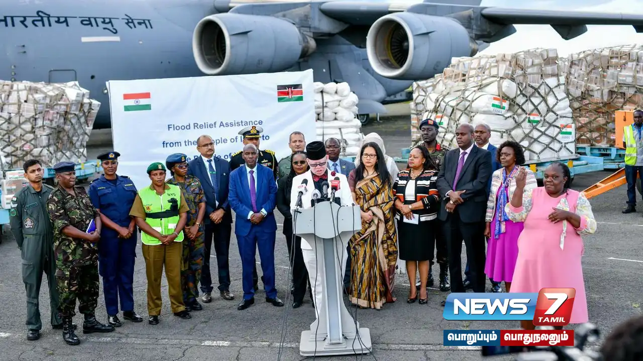 இந்நிலையில், கென்யாவுக்கு மனிதாபிமான உதவியாக இந்தியா கடந்த வாரம் நிவாரணப் பொருட்களை அனுப்பி வைத்தது. இந்திய கடற்படையின் ஐஎன்எஸ் சுமேதா ரோந்து கப்பல் மூலம் நிவாரணப் பொருட்கள் அனுப்பி வைக்கப்பட்டன. இந்தக் கப்பல் கடந்த 10-ம் தேதி கென்யாவின் மொம்பாசா துறைமுகத்தை அடைந்தது.