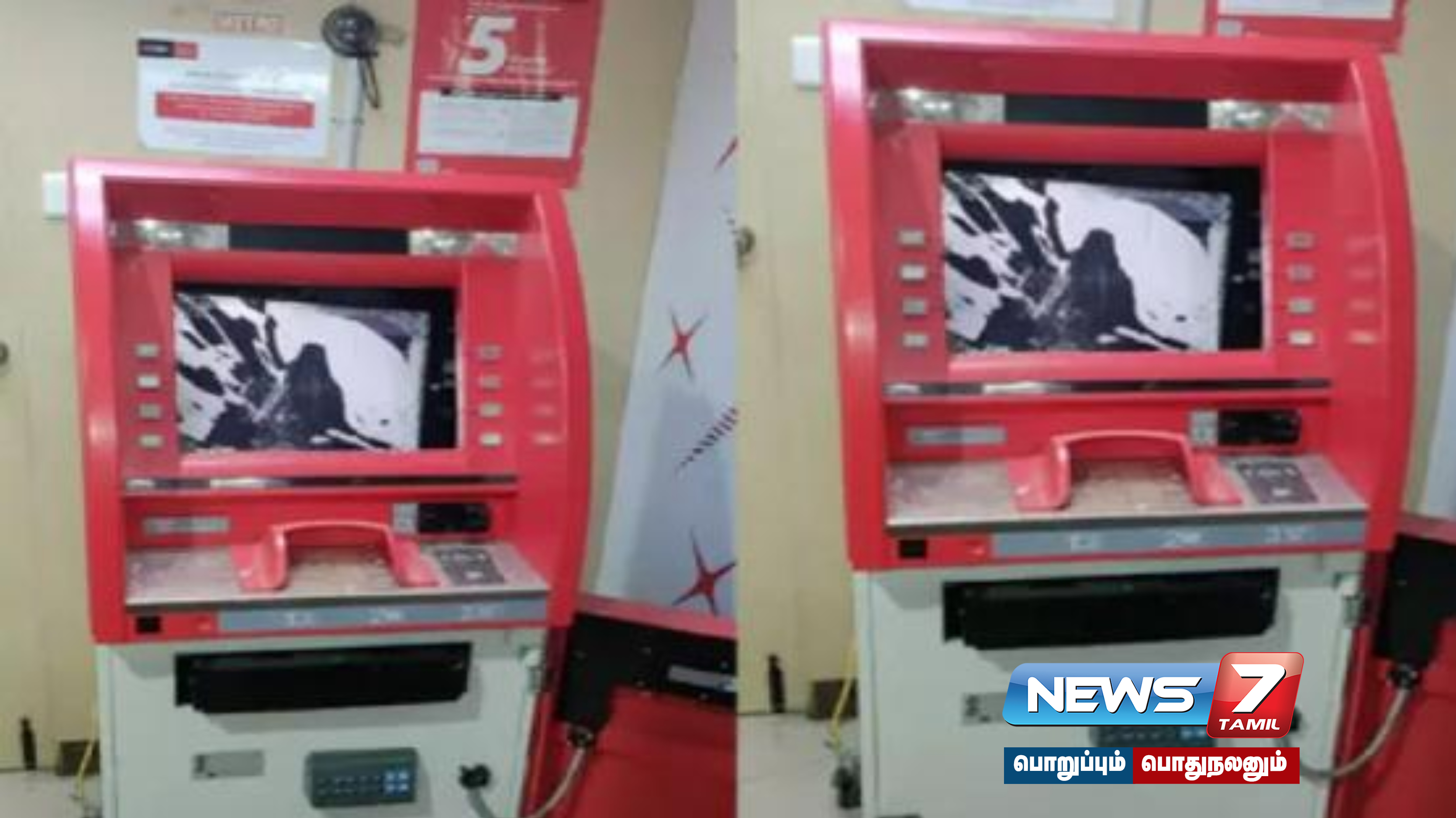 சென்னை கே.கே.நகரில் முனிசாமி சாலையில் உள்ள டி.பி.எஸ் வங்கி ஏ.டி.எம் மையத்தில் கடந்த 27ம் தேதி இரவு வந்த மர்ம நபர்கள் சிலர் பெரிய கற்களால் ஏ.டி.எம் இயந்திரத்தை உடைத்து கொள்ளையடிக்க முயற்சி செய்துள்ளனர். இதனை ஹைதரபாத்தில் இருந்து சி.சி.டி.வி மூலம் பார்த்துக் கொண்டிருந்த அந்த வங்கியின் அதிகாரிகள் சென்னை கே.கே நகர் போலீசாருக்கு தகவல் அளித்துள்ளனர்.