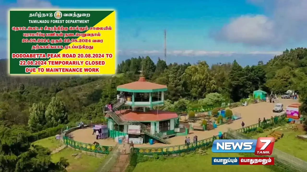 இந்நிலையில் நுழைவு கட்டணம் மற்றும் சோதனை சாவடி அமைப்பதற்கான இறுதி கட்டப் பணிகள் நடைபெற்று வருவதால் நாளை முதல் 3 நாட்களுக்கு தொட்டபெட்டா மலைச்சிகரத்திற்கு சுற்றுலாப் பயணிகள் செல்ல தடை விதிக்கப்பட்டு தற்காலிகமாக மூடப்படுவதாக வனத்துறை தெரிவித்துள்ளது.