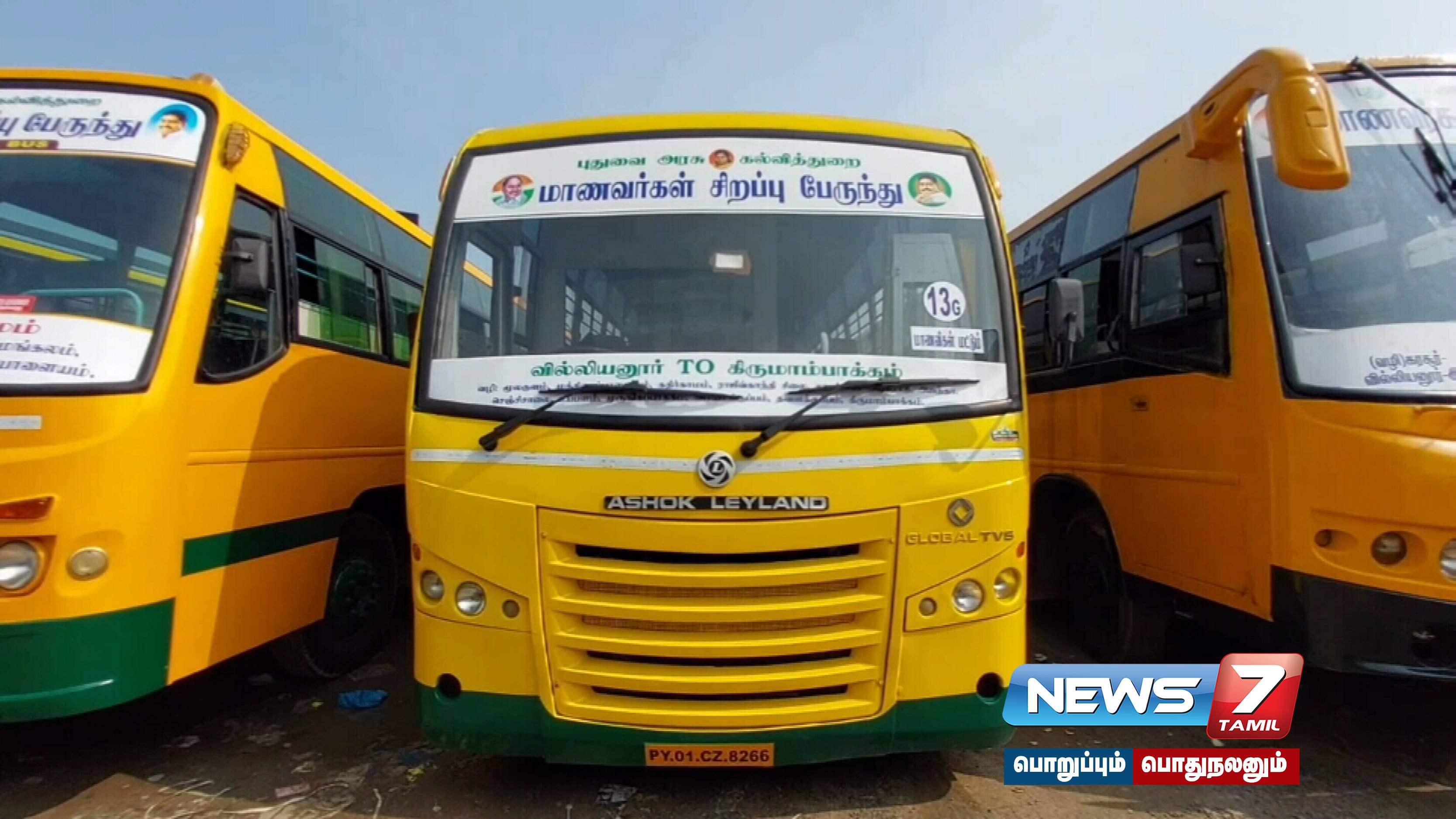 காரைக்காலில் 74 பேருந்துகள் மாணவர்களின் பயன்பாட்டுக்காக இயக்கப்படுகிறது. இதில் 17 பேருந்துகள் காரைக்காலில் இயக்கப்படுகிறது. மாணவர்களின் பாதுகாப்பை கருத்தில் கொண்டு பேருந்துகளில் கண்காணிப்பு கேமரா, ஜிபிஎஸ் கருவிகள் பொருத்தப்பட்டுள்ளது. மாணவர்கள் மற்றும் மாணவிகளுக்கு என தனித் தனியாக பேருந்துகள் இயக்கப்படும்.