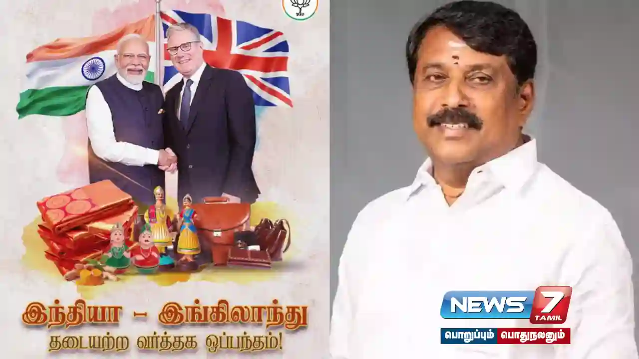 தமிழ்நாடு பாஜக மாநில தலைவர் நயினார் நாகேந்திரன் எக்ஸ் தளத்தில் பதிவு ஒன்றை வெளியிட்டுள்ளார். அந்த பதிவில், “இந்திய பிரதமர் நரேந்திர மோடி சமீபத்திய அரசு முறை பயணத்தில் இந்தியா மற்றும் இங்கிலாந்து இடையே தடையற்ற வர்த்தக ஒப்பந்தம் கையெழுத்தாகியுள்ளது வரலாற்றுச் சிறப்புமிக்க நிகழ்வாகும்.