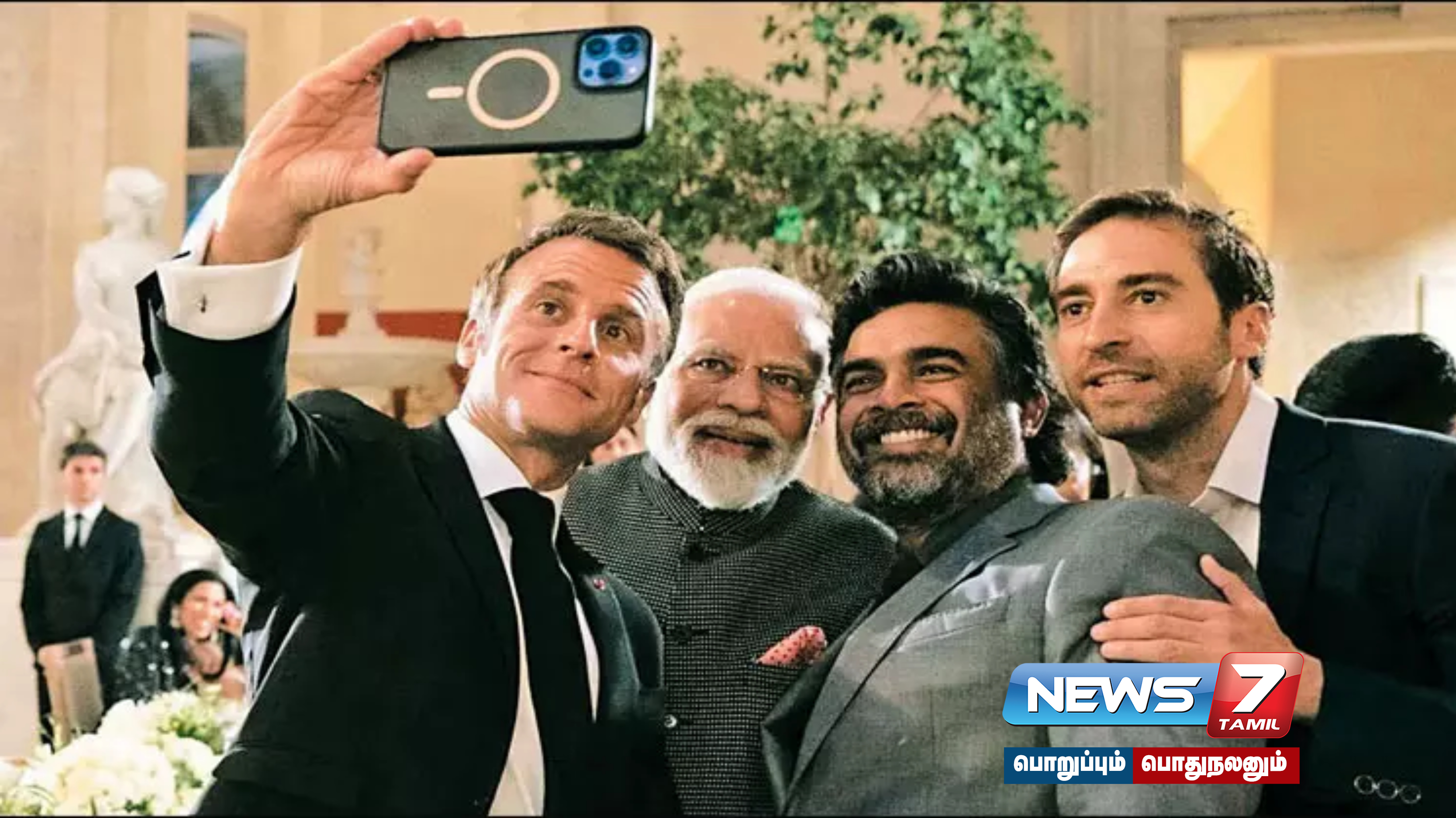 பிரதமர் நரேந்திர மோடி மற்றும் நடிகர் மாதவன் ஆகியோருடன் பிரான்ஸ் அதிபர் இமானுவேல் மேக்ரான் ஆகியோருடன் எடுத்துக் கொண்ட ‘செல்ஃபி’ புகைப்படம் தற்போது சமூக வலைதளங்களில் வைரலாகி வருகிறது.