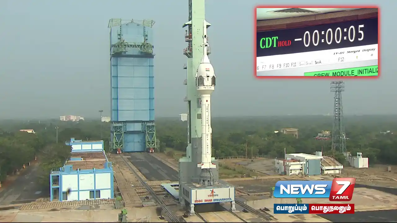 இந்நிலையில் காலை 8;45 மணியளவில் இஸ்ரோ தலைவர் சோம்நாத் இந்த சோதனை திட்டம் நிறுத்தி வைக்கப்பட்டுள்ளதாக தெரிவித்தார். இன்ஜினில் கோளாறு ஏற்பட்டுள்ளதாகவும் இதனால் இந்த திட்டம் இன்று நடக்க முடியவில்லை. இந்த கோளாறு குறித்து ஆய்வு செய்யப்படும் என்றும் தெரிவித்தார். 5 வினாடிக்கு முன் தானாகவே கவுன்ட்டவுன் நிறுத்தப்பட்டது. எதனால் இவ்வாறு நடந்தது என்பதை ஆய்வு செய்து விரைவில் தெரிவிப்பதாகவும் அவர் கூறியுள்ளார்.