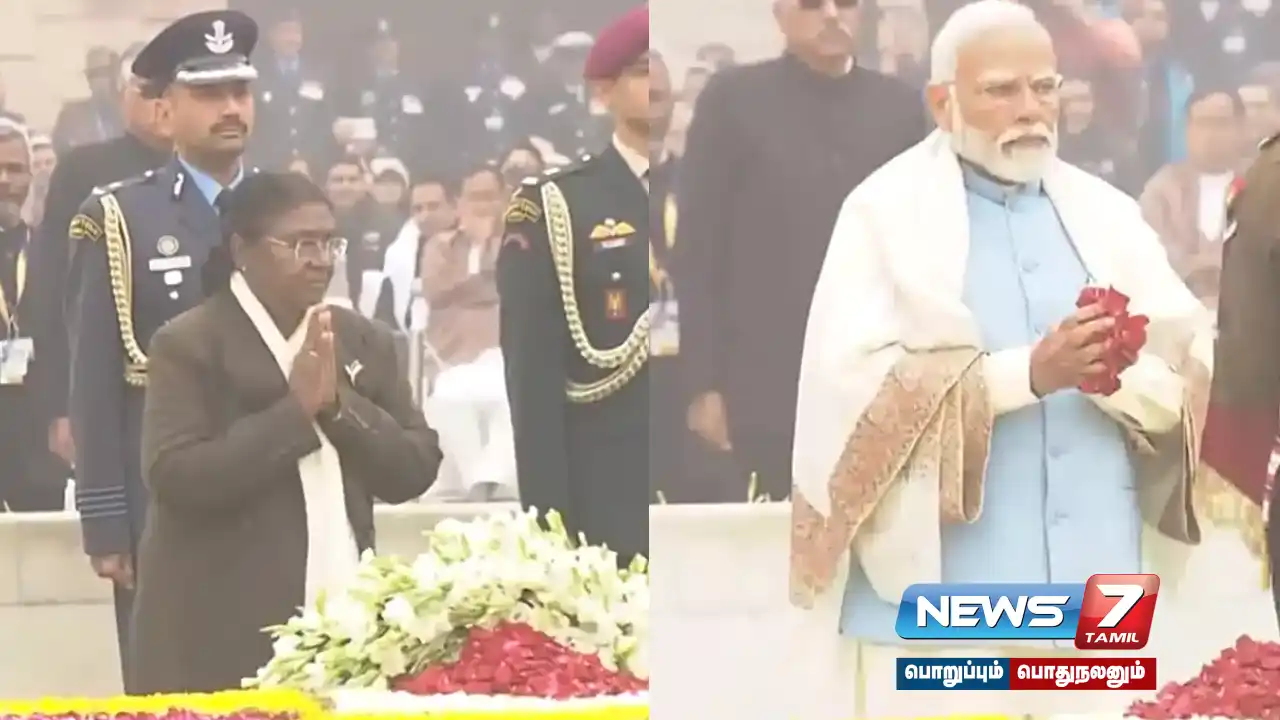 மகாத்மா காந்தியின் 76-வது நினைவு நாளையொட்டி டெல்லி ராஜ்காட்டில் உள்ள காந்தி நினைவிடத்தில் குடியரசுத் தலைவர் திரௌபதி முர்மு, பிரதமர் நரேந்திர மோடி உள்ளிட்டோர் மரியாதை செலுத்தினர்.