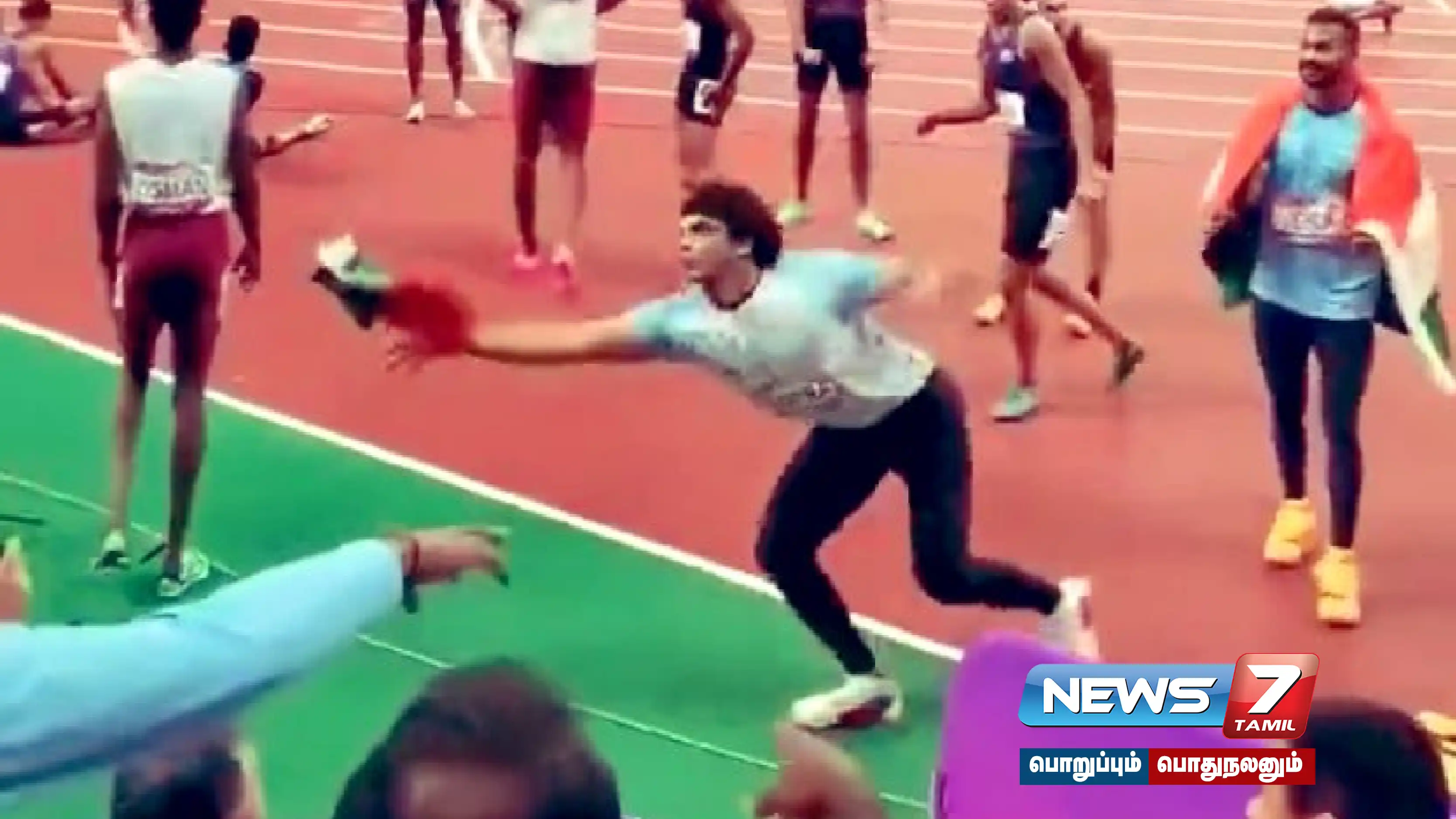 ஆசிய விளையாட்டுப் போட்டியில் ஈட்டி எறிதல் வீரர் நீரஜ் சோப்ரா ரசிகர்கள் வீசிய தேசியக் கொடியை கீழே விழாமல் தாவிப் பிடித்தார். இந்த விடியோ இணையத்தில் ரசிகர்களால் பகிரப்பட்டு வருகிறது.