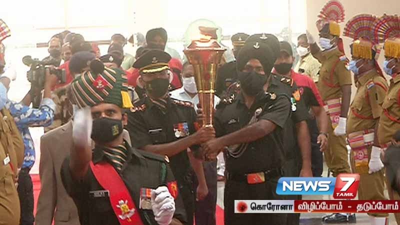 டெல்லி போர் நினைவு சதுக்கத்திலிருந்து நான்கு வெற்றி ஜோதிகள் ஏற்றப்பட்டு நாட்டின் நான்கு திசைகளுக்கும் அனுப்பி வைக்கப்பட்டது. இதன் ஒருபகுதியாக சென்னை துறைமுகத்திற்கு கொண்டு வந்த வெற்றி தீபத்தை துறைமுக தலைவர், ரவீந்திரனிடம், லெஃப்டினன்ட் ஜெனரல் அருண் வழங்கினார்.