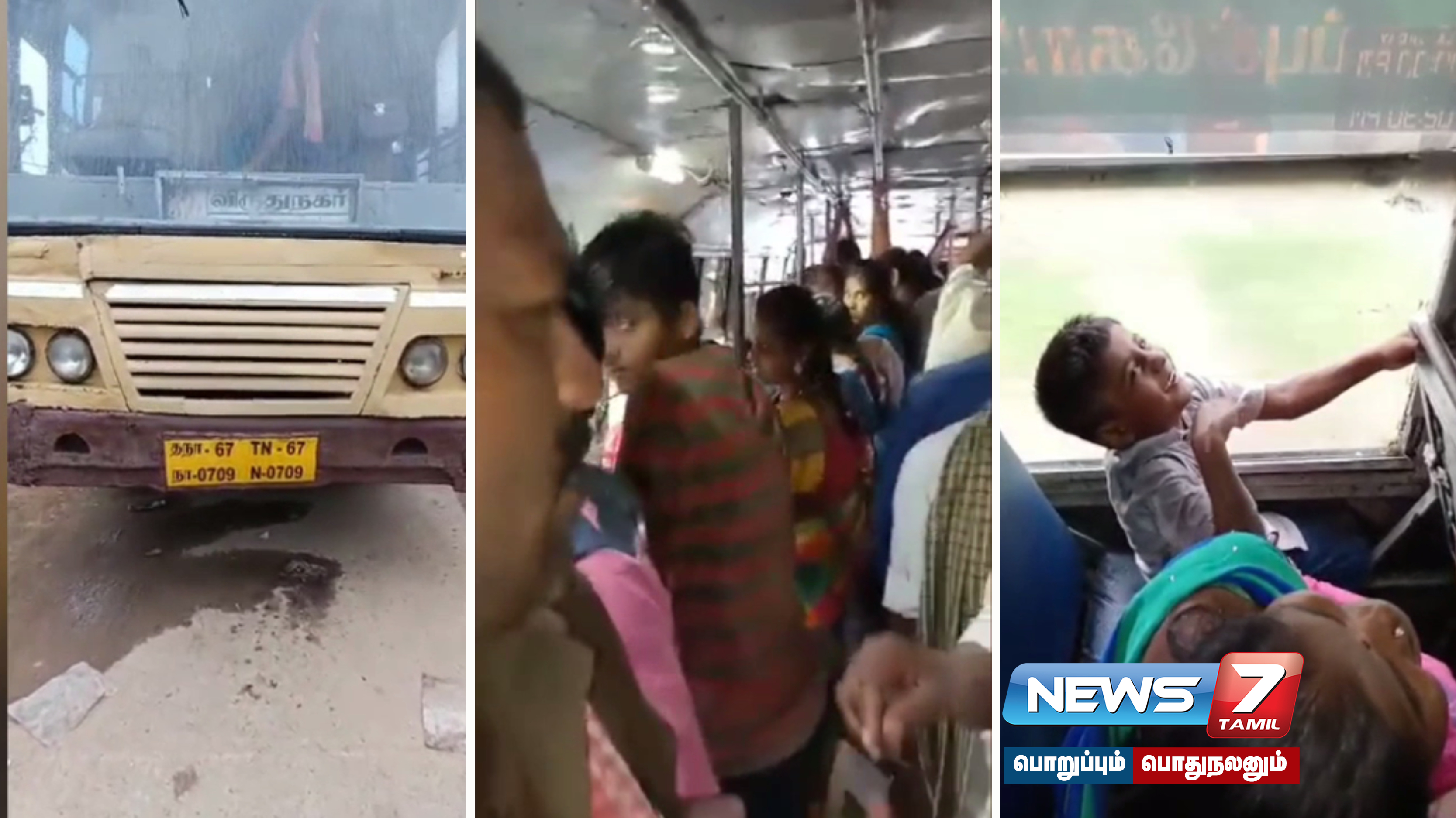 விருதுநகரில் இருந்து அருப்புக்கோட்டைக்கு சென்ற அரசு பேருந்தில் 50க்கும் மேற்பட்ட பயணிகள் பயணம் செய்தனர். அப்போது மழை பெய்த நிலையில், பேருந்தின் மேற்கூரை சேதமடைந்து இருந்ததால் பயணிகள் மீது மழைநீர் ஒழுகியது. இதனால் பயணிகள் மழை நீரில் நனைந்து கொண்டே பயணிக்கும் அவல நிலை