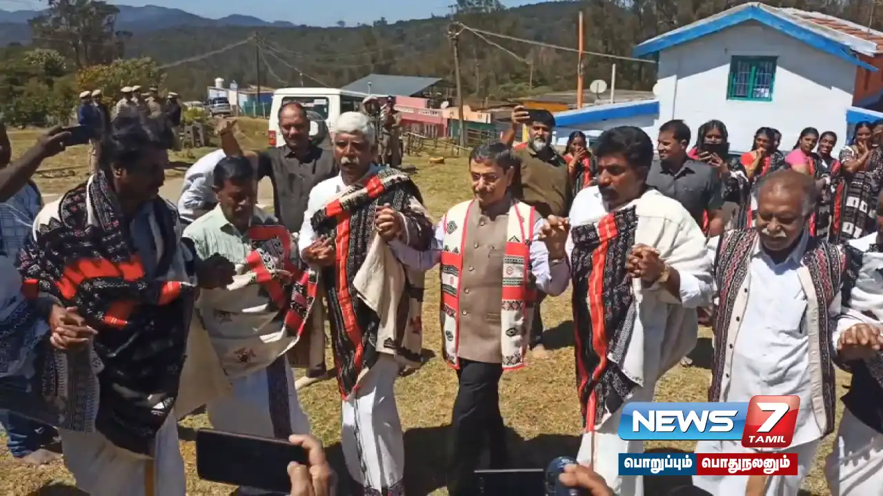தமிழ்நாடு ஆளுநர் ஆர்.என்.ரவி 4 நாள் பயணமாக உதகை சென்ற நிலையில், தோடர் பழங்குடியின ஆண்களுடன் பாரம்பரிய நடனமாடினார்.