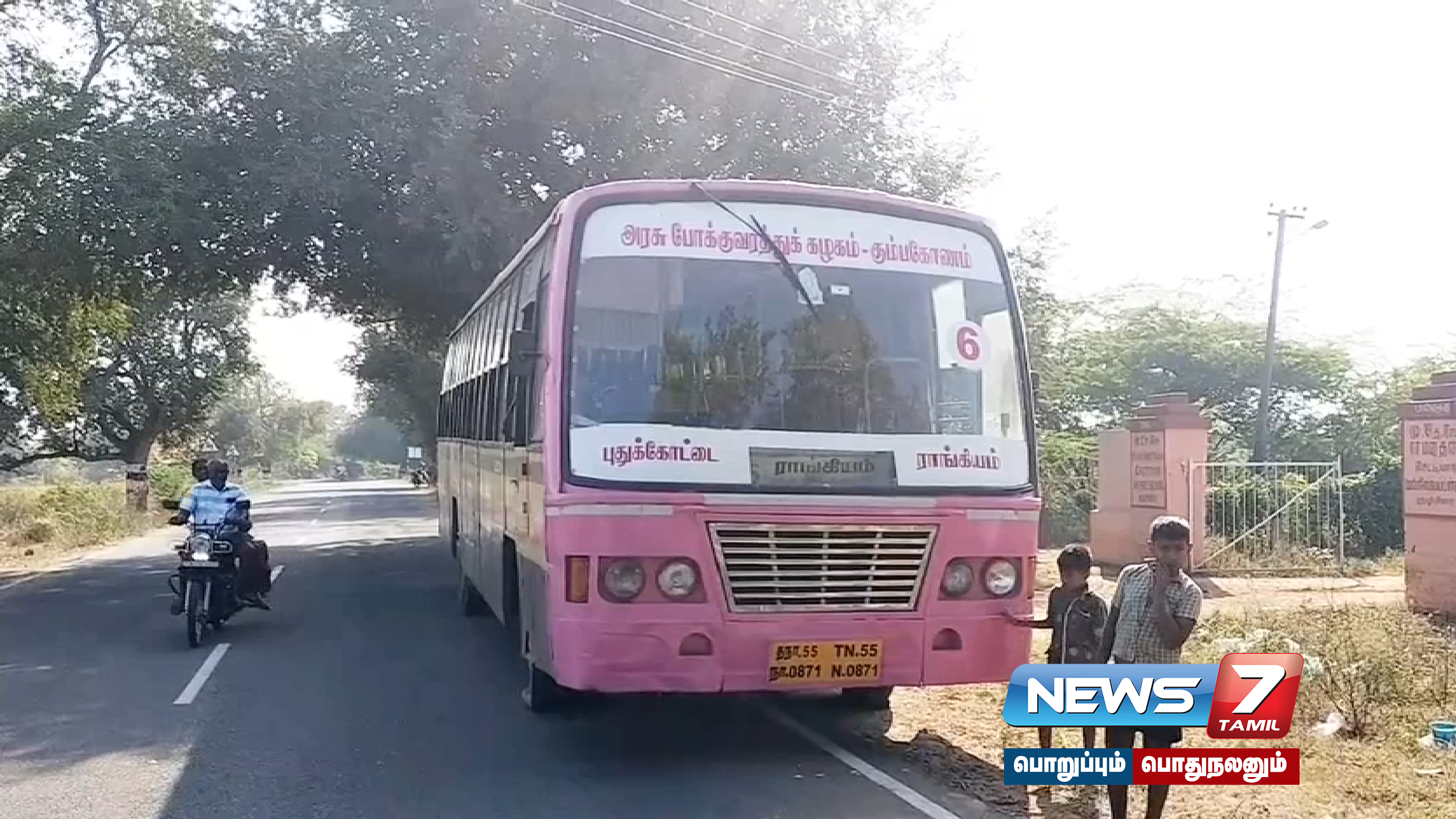 புதுக்கோட்டையிலிருந்து நமணசமுத்திரம் வழியாக செல்லும் அரசு பேருந்தில் மாணவ, மாணவிகள் உட்பட மொத்தம் 60 க்கும் மேற்பட்டோர் பயணம் செய்தனர். அப்போது திடீரென குழிபிறை அருகே சென்ற பொழுது பேருந்து நடுவழியில் பஞ்சராகி நின்றது. அப்பேருந்தில் சக்கரத்தை கழட்டி மாற்றுவதற்கான உபகரணங்களோ வேறு சக்கரமோ இல்லததால் வேறு பேருந்திற்காக பொதுமக்கள் மற்றும் மாணவர்கள் ஒரு மணி நேரம் நடுவழியில் நின்றனர்.