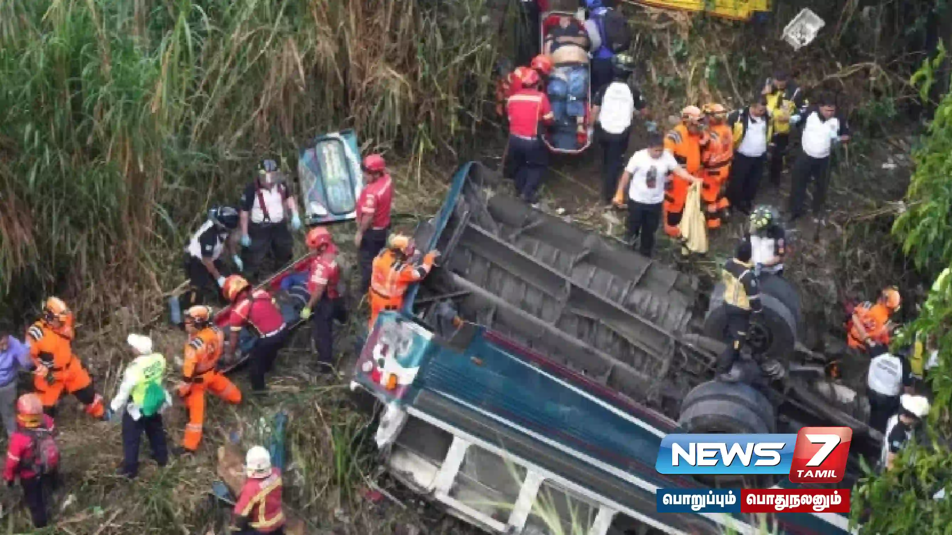 மத்திய அமெரிக்க நாடுகளில் ஒன்றான கவுதமலாவில் கடந்த பிப்.10 ம் தேதி பேருந்து ஒன்று பள்ளத்தாக்கில் கவிழ்ந்து விபத்திற்குள்ளானது. அந்த பேருந்து பாலத்தின் மீது சென்றுகொண்டிருந்த போது சாலையோர தடுப்பின் மீது மோதி கட்டுப்பாட்டை இழந்து பள்ளத்தாக்கில் விழுந்தது. இந்த விபத்தில் 53 பேர் உயிரிழந்துள்ளதாக மீட்புப் பணியாளர்கள் தெரிவித்திருந்தனர்.