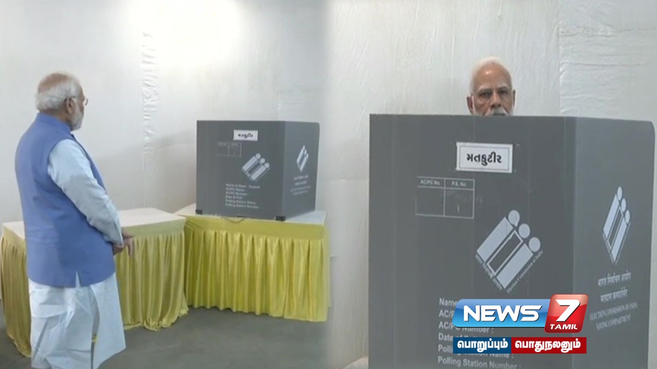 அகமதாபாத்தில் உள்ள சபர்மதி ரணிப்பில் அமைக்கப்பட்ட்டுள்ள வாக்குச்சாவடியில் பிரதமர் மோடி இன்று வாக்களித்தார். பிரதமர் மோடி வாக்களிக்க வருகை தந்ததால் அங்கு பலத்த போலீஸ் பாதுகாப்பு போடப்பட்டு இருந்தது.