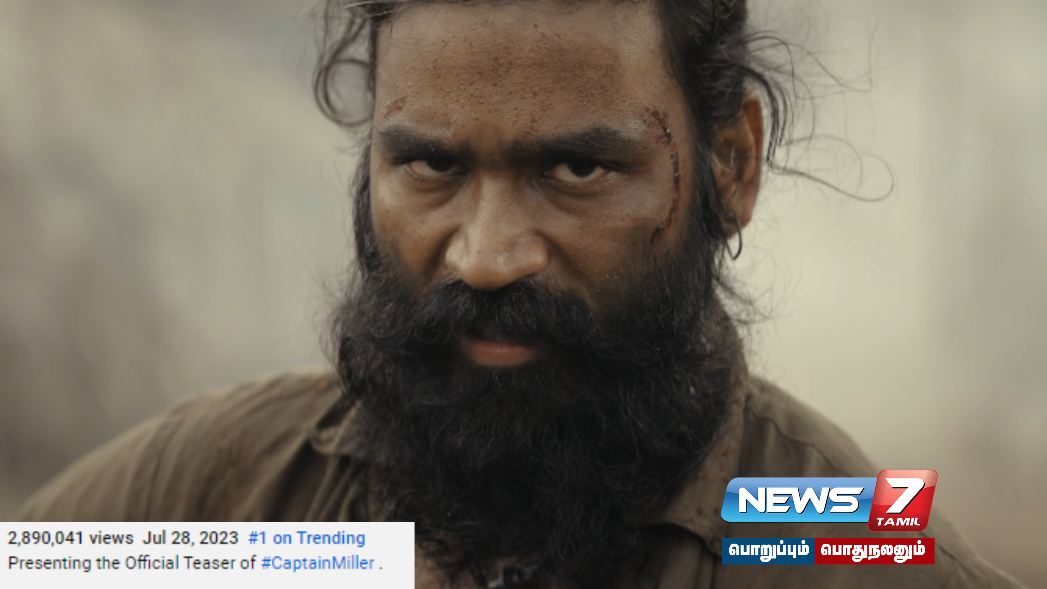 அந்த வகையில், ‘கேப்டன் மில்லர்’ படத்தின் டீசர், அவரது பிறந்தநாளையொட்டி நள்ளிரவில் வெளியாகியுள்ளது. டீசரின் தொடக்கம் முதல் இறுதி வரை துப்பாக்கி குண்டுகள் சத்தம் தெறிக்கிறது. 1.33 நிமிட டீசரில் டயலாக் பெரிதாக இல்லாமல் படம் முழுக்க சண்டை, துப்பாக்கி என புதுமையாக கவனம் ஈர்க்கிறது. மேலும் யூடியூபில் இந்த டீசர் 27 லட்சம் பார்வைகளை கடந்து ட்ரெண்டிங்கில் முதல் இடத்தில் உள்ளது.