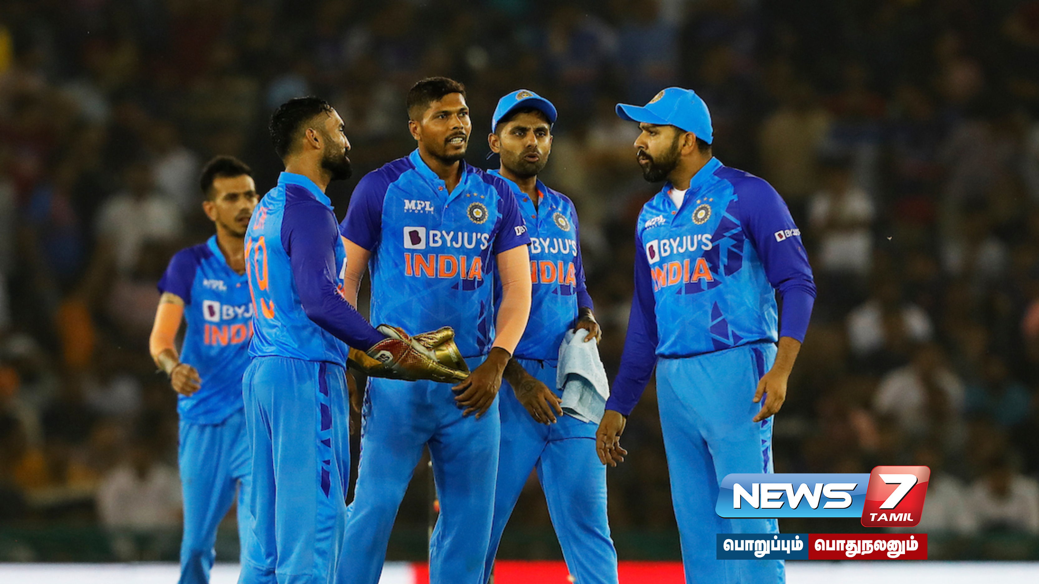 எனினும், ஹேசில்வுட் பந்துவீச்சில் ரோஹித் 11 ரன்களில் ஆட்டமிழந்தார். அதைத் தொடர்ந்து வந்த கோலி 2 ரன்களில் நடையைக் கட்டினார். பின்னர் வந்த சூர்யகுமார் யாதவ் 46 ரன்களிலும், அக்சர் 6 ரன்களில் ஆட்டமிழந்தனர். விக்கெட் கீப்பர் தினேஷ் கார்த்திக் 6 ரன்களும், ஹர்ஷல் படேல் 7 ரன்களில் ஆட்டமிழந்தனர்.