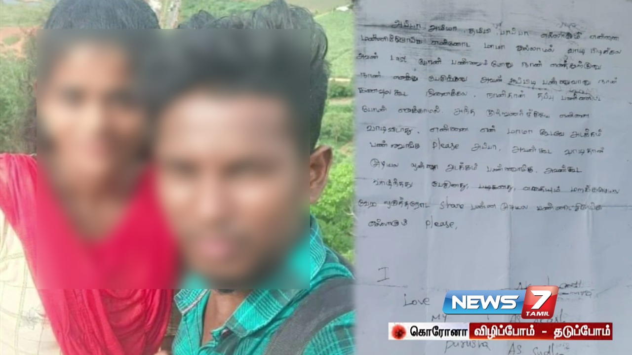 நீ இல்லாத வாழ்க்கை எனக்கு வேணாம். நீ மட்டும் தான் என்னோட உலகம் நீ இந்த உலகத்தை இல்லாம நான் எதுக்கு இருக்கணும்.மேலும், அப்பா, அம்மா, தம்பி, பாப்பா எல்லாரும் என்னை மன்னிச்சிடுங்க என்னோட மாமா இல்லாமல் வாய புடிக்கல என்னை என் மாமா கூடவே அடக்கம் பண்ணுங்க ப்ளீஸ் அப்பா அவன் கூட வாழத்தான் முடியல ஒன்னா அடக்கம் பண்ணுங்க அவன் கூட வாழ்ந்தது, பேசினது, பழகினது எதையும் மறைக்க முடியல வேற ஒருத்தரோட ஷேர் பண்ண முடியல மன்னிச்சிடுங்க எல்லாரும் ப்ளீஸ்”, உள்ளிட்ட பல்வேறு விவரங்களை கடிதத்தில் எழுதி உள்ளார்.