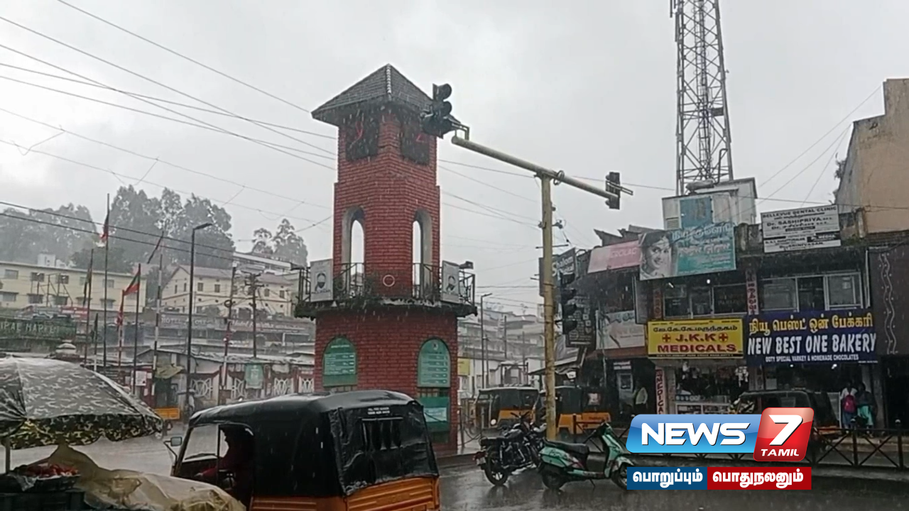 நீலகிரி மாவட்டம், உதகை மற்றும் அதன் சுற்றுவட்டாரப் பகுதிகளில், கடந்த சில நாட்களாக அவ்வப்போது மிதமான மழையும், சாரல் மழையும் பெய்து வந்தது. மேகமூட்டத்துடன் ரம்யமான காலநிலை நிலவி வந்தது.இந்நிலையில் ஒரு மணி நேரத்திற்கும் மேலாக கனமழை கொட்டித் தீர்த்தது.
