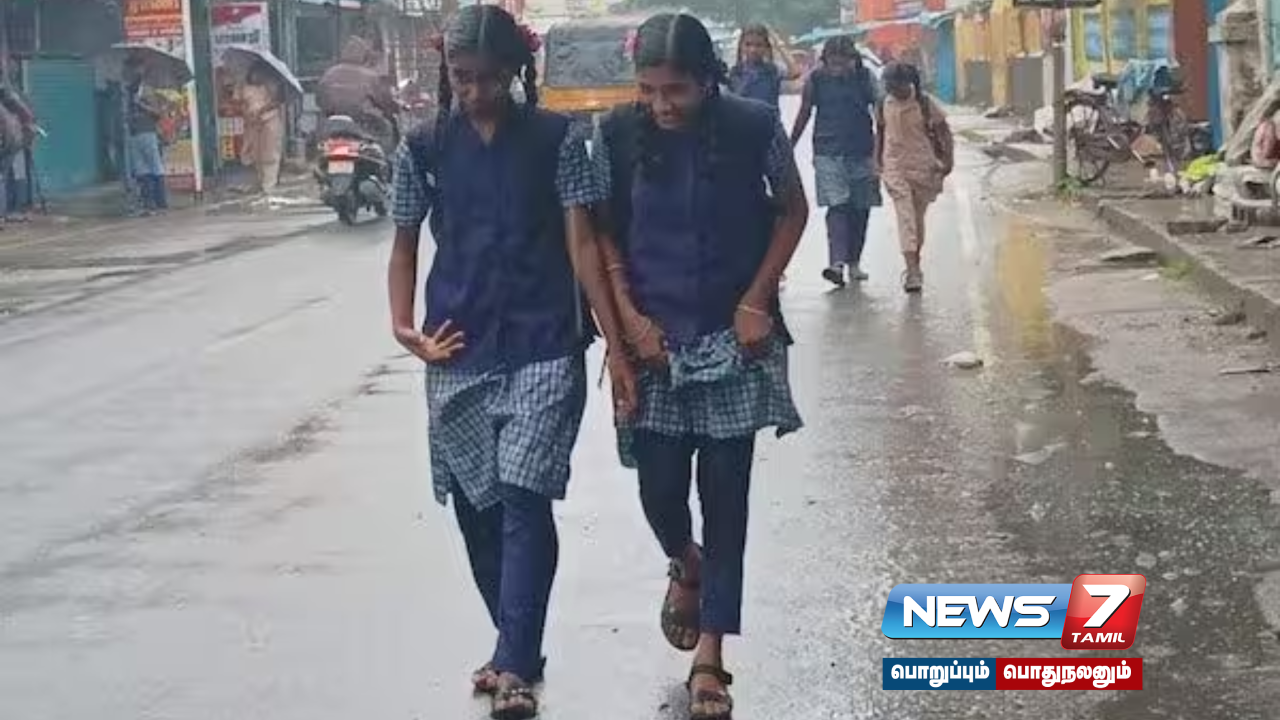 தமிழகத்தில் காலை 9 மணிவரை மழை பெய்தும் பள்ளிகளுக்கு விடுமுறை அளிக்காததால், மாணவ மாணவிகள் நனைந்தபடியே சென்றனர்.