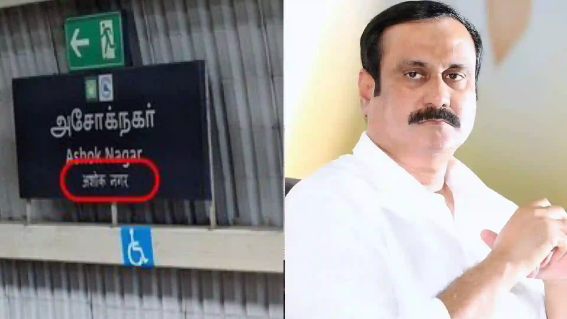 பாஜக தலைவர் அன்புமணி ராமதாஸ் எக்ஸ் தாளத்தில் பதிவு ஒன்றை வெளியிட்டுள்ளார். அந்த பதிவில், “சென்னை அசோக்நகர் மெட்ரோ தொடர்வண்டி நிலையத்தில் அசோக் நகர் என்ற பெயர் தமிழ், ஆங்கிலம் ஆகியவற்றுடன் இந்தியிலும் எழுதப்பட்டிருப்பது அதிர்ச்சியையும், பரபரப்பையும் ஏற்படுத்தியுள்ளது.