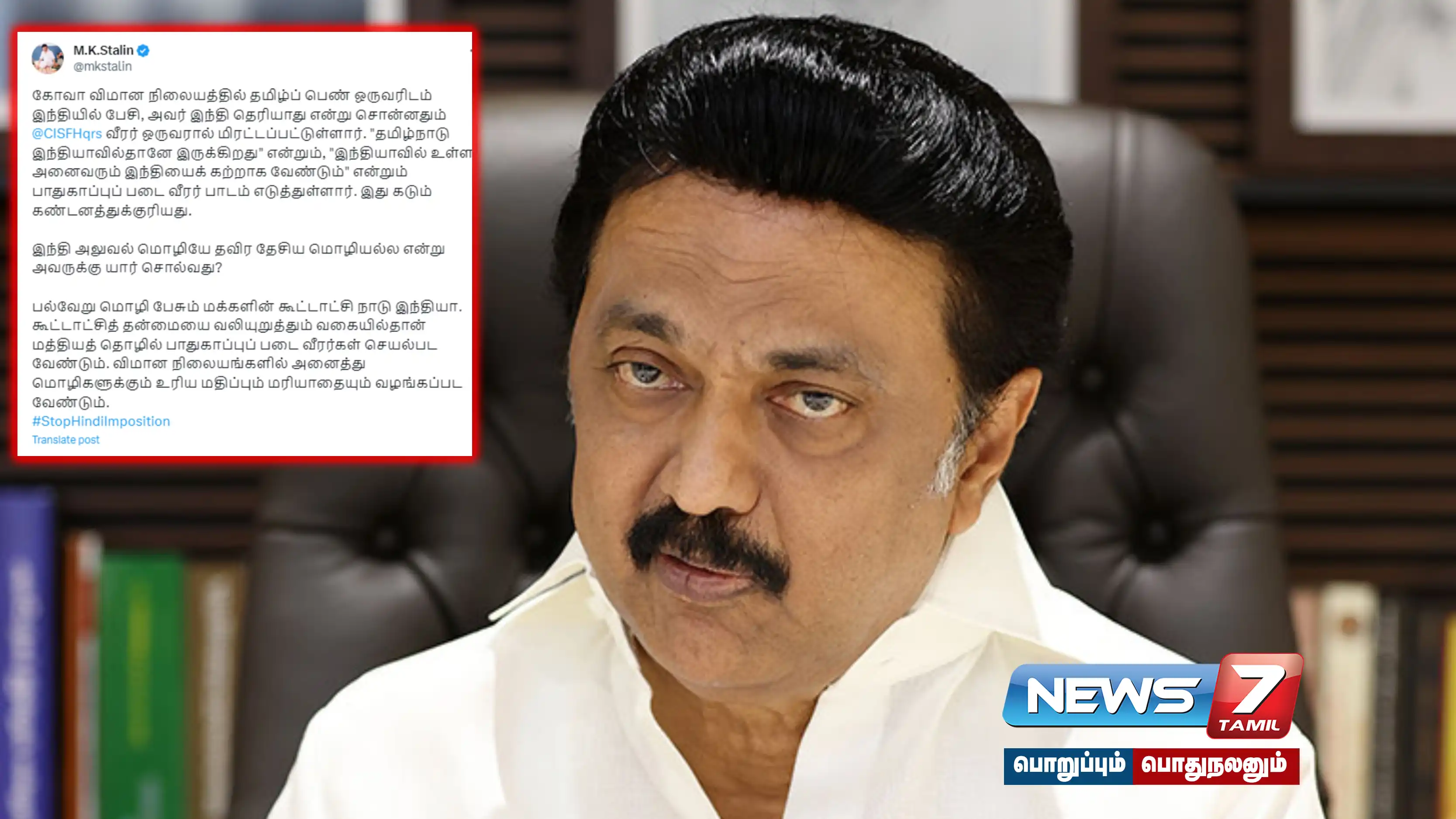 இந்தி அலுவல் மொழியே தவிர தேசிய மொழியல்ல என்று அவருக்கு யார் சொல்வது?பல்வேறு மொழி பேசும் மக்களின் கூட்டாட்சி நாடு இந்தியா. கூட்டாட்சித் தன்மையை வலியுறுத்தும் வகையில் தான் மத்தியத் தொழில் பாதுகாப்புப் படை வீரர்கள் செயல்பட வேண்டும். விமான நிலையங்களில் அனைத்து மொழிகளுக்கும் உரிய மதிப்பும் மரியாதையும் வழங்கப்பட வேண்டும்,” எனக் குறிப்பிட்டுள்ளார்.