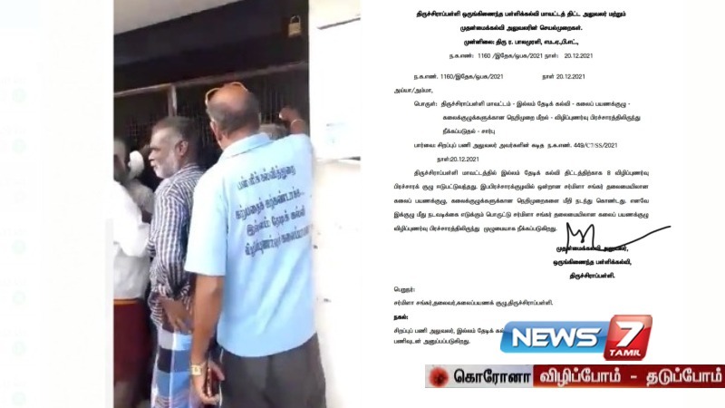 திருச்சிராப்பள்ளி மாவட்டத்தில், இல்லம் தேடிக் கல்வி பயணக் குழுவில் உள்ள ஒருவர், நெறிமுறை மீறியதால் கலைபயணக்குழு மீது அதிரடி நடவடிக்கை எடுக்கப்படுள்ளது.