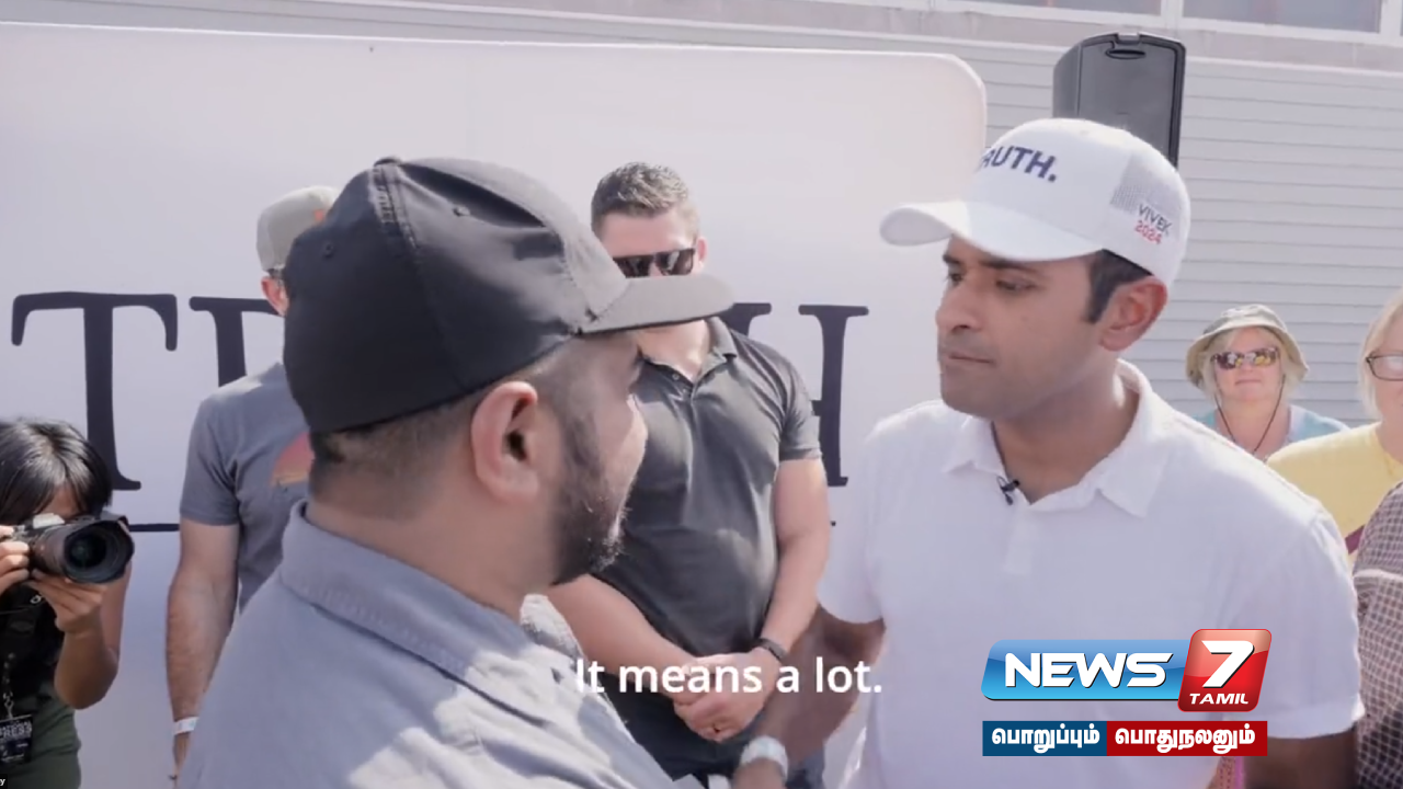 அப்போது விவேக் ராமசாமியிடம் பேசிய தமிழகத்தை பூர்விகமாக கொண்ட ஒருவர், “அடுத்த அதிபராக உங்களை பார்க்க விரும்புகிறேன். அதற்காக வாழ்த்துகள். எனது பெற்றோரும் தமிழ்நாட்டை சார்ந்தவர்கள்” எனத் தெரிவித்தார். உடனடியாக “நானும் தமிழ் பேசுவேன், பாலக்காடு தமிழ்” என்று தமிழில் சிரித்தபடி அவர் பதிலளித்தார். விவேக் ராமசாமியின் ட்விட்டர்(எக்ஸ்) பக்கத்தில் பகிரப்பட்ட இந்த காணொலி வைரலாகி வருகின்றது.