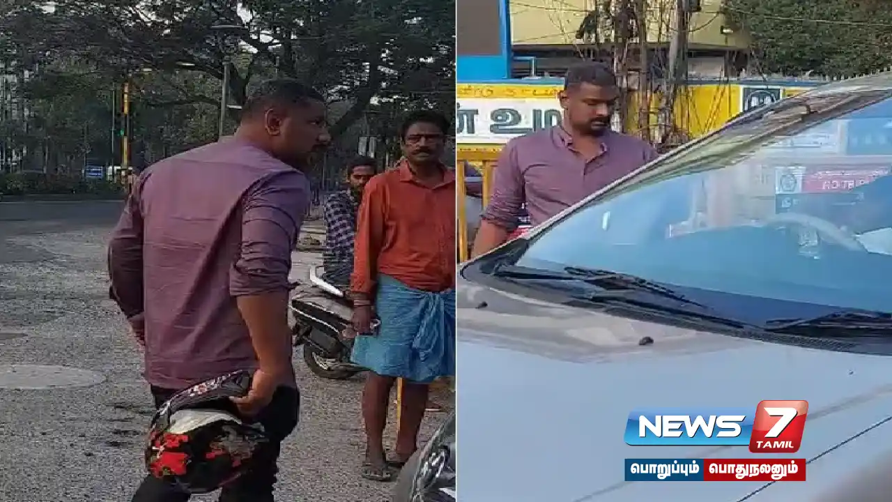 “படப்பிடிப்பிற்காக இன்று காலை சென்ற போது இளைஞர் ஒருவர் தனது கார் கண்ணாடியை லேசாக இடித்துவிட்டு சென்றுள்ளார். கண்ணாடி மீது தெரியாமல் பட்டிருக்கும் என நினைத்துக் கொண்டு தானும் வாகனத்தை எடுத்து படப்பிடிப்பிற்காக சென்றோம். ஆனால் அந்த இளைஞர் தங்களுடைய காரை வழிமறித்து பிரச்னையில் ஈடுபட்டார். அப்போது அவர் மேல் தான் தவறு என சுட்டிக் காண்பிப்பதற்குள் அவர் நிலைத்தடுமாறி தவறான சொற்களை பயன்படுத்தினார்.