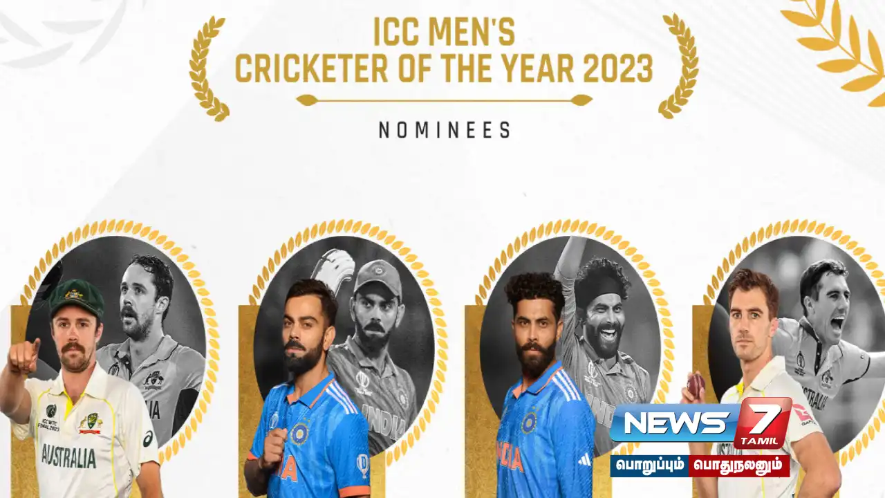 2023-ம் ஆண்டின் சிறந்த ஐசிசி கிரிக்கெட் வீரர் (சர் கார்பீல்ட் சோபர்ஸ் விருது) பரிந்துரையில் விராட் கோலி, பாட் கம்மின்ஸ், ரவீந்திர ஜடேஜா மற்றும் டிராவிஸ் ஹெட் ஆகியோர் இடம் பெற்றுள்ளனர்.