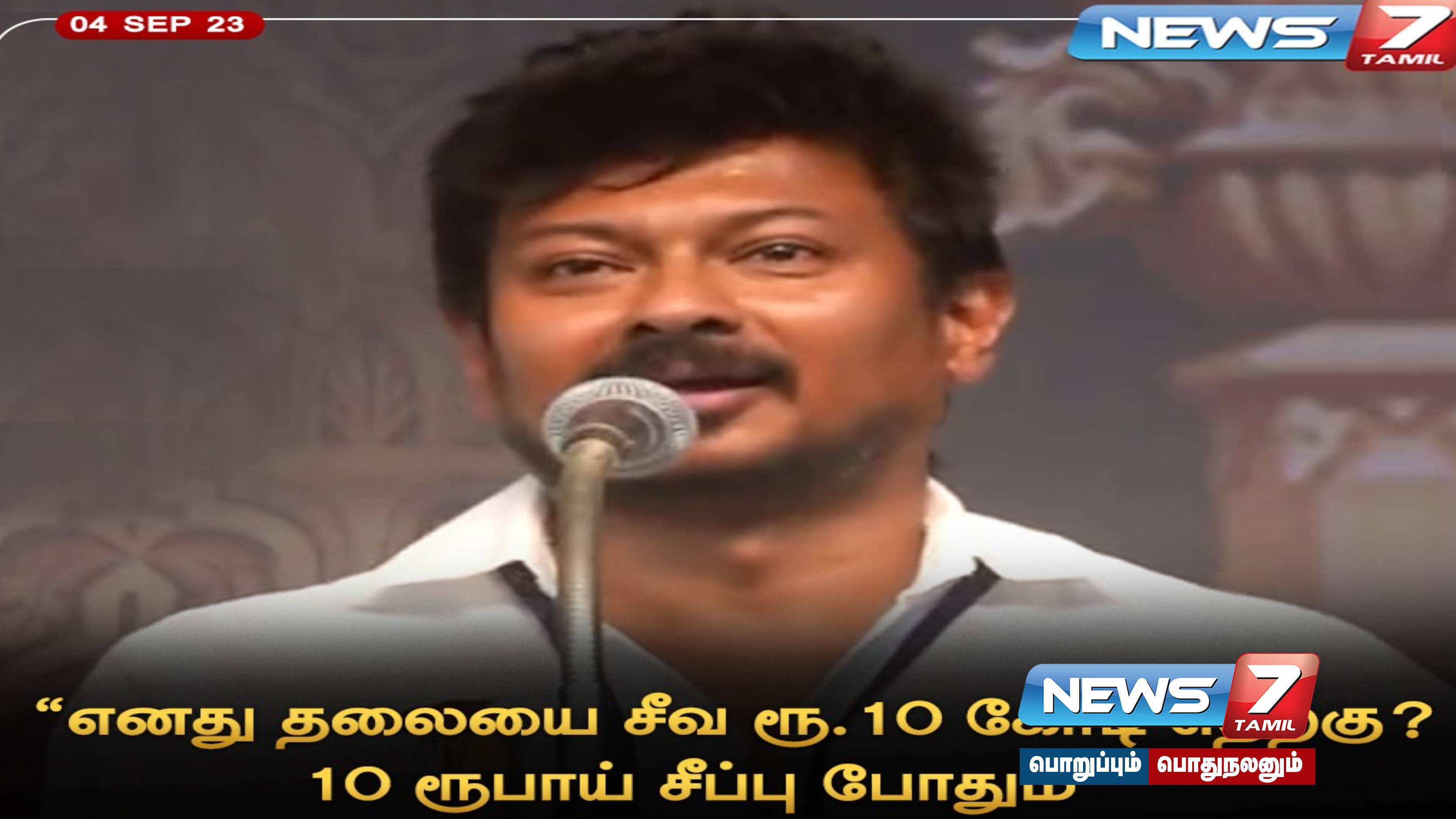என் தலையை சீவ 10 கோடி ரூபாய் எதற்கு 10 ரூபாய் சீப்பு கொடுத்தால் நானே சீவிக்கொள்வேனே என அமைச்சர் உதயநிதி ஸ்டாலின் நகைச்சுவையாக கூறியுள்ளார்.