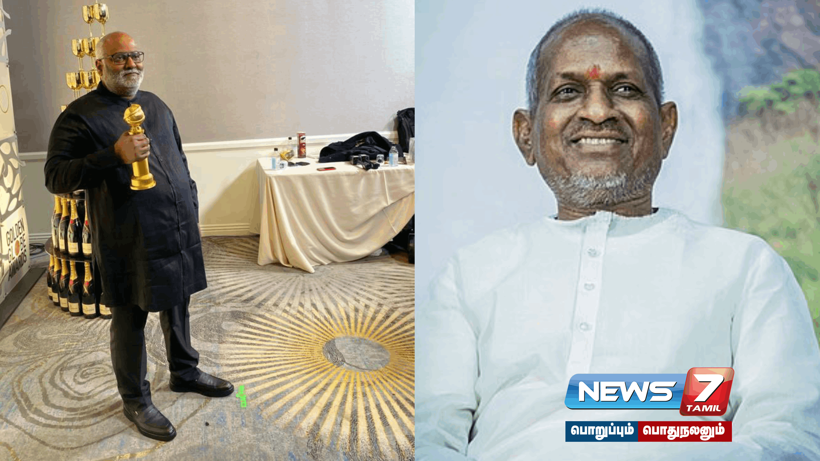 கோல்டன் குளோப் விருதை வென்றுள்ள ஆர்.ஆர்.ஆர் திரைப்படக் குழுவினருக்கு, நடிகர் கமல்ஹாசன் மற்றும் இசையமைப்பாளர் இளையராஜா வாழ்த்துக்களை தெரிவித்துள்ளனர். இதுகுறித்து கமல்ஹாசன் வெளியிட்டுள்ள டிவிட்டர் பதிவில், கோல்டன் குளோப் விருதை வென்று தந்திருக்கும் இசையமைப்பாளர் கீரவாணிக்கு வாழ்த்துக்கள் என்று தெரிவித்துள்ளார். இளையராஜா வெளியிட்ட பதிவில், படக்குழுவினரின் கடின உழைப்புக்கு இந்த வெற்றி முழு தகுதியானது என்றும் தமக்கு மிகுந்த மகிழ்ச்சி, வாழ்த்துகள் என்றும் குறிப்பிட்டுள்ளார்.