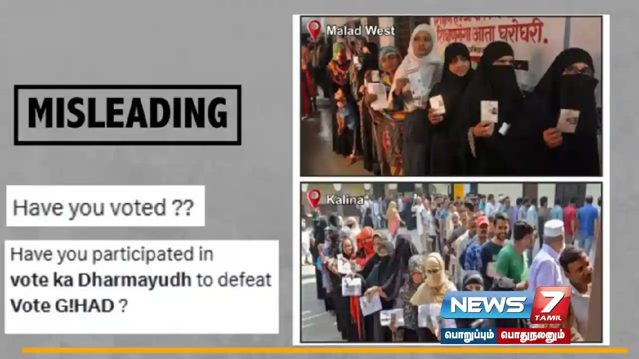இந்த நிலையில் நவம்பர் 20 ஆம் தேதி மகாராஷ்டிராவில் உள்ள மக்கள் தங்கள் மாநில அரசைத் தேர்ந்தெடுக்க வாக்களிக்கும்போது, புர்கா மற்றும் ஹிஜாப் அணிந்த பெண்களைக் காட்டும் இரண்டு படங்களைக் கொண்ட ஒரு பதிவு ஒன்று வைரலானது. மகாராஷ்டிரா மாநிலத்தில் ‘ ஓட்டு ஜிஹாத் ‘ நடப்பதாக இந்த படங்களை எக்ஸ் பக்கத்தில் பதிவிட்டுள்ளனர். மேலும் இப்பதிவில் எனவே இந்து சமூகத்தினர் அதிக எண்ணிக்கையில் வாக்களிக்குமாறு இப்பதிவிட்ட பயனர் வலியுறுத்தியுள்ளார்.