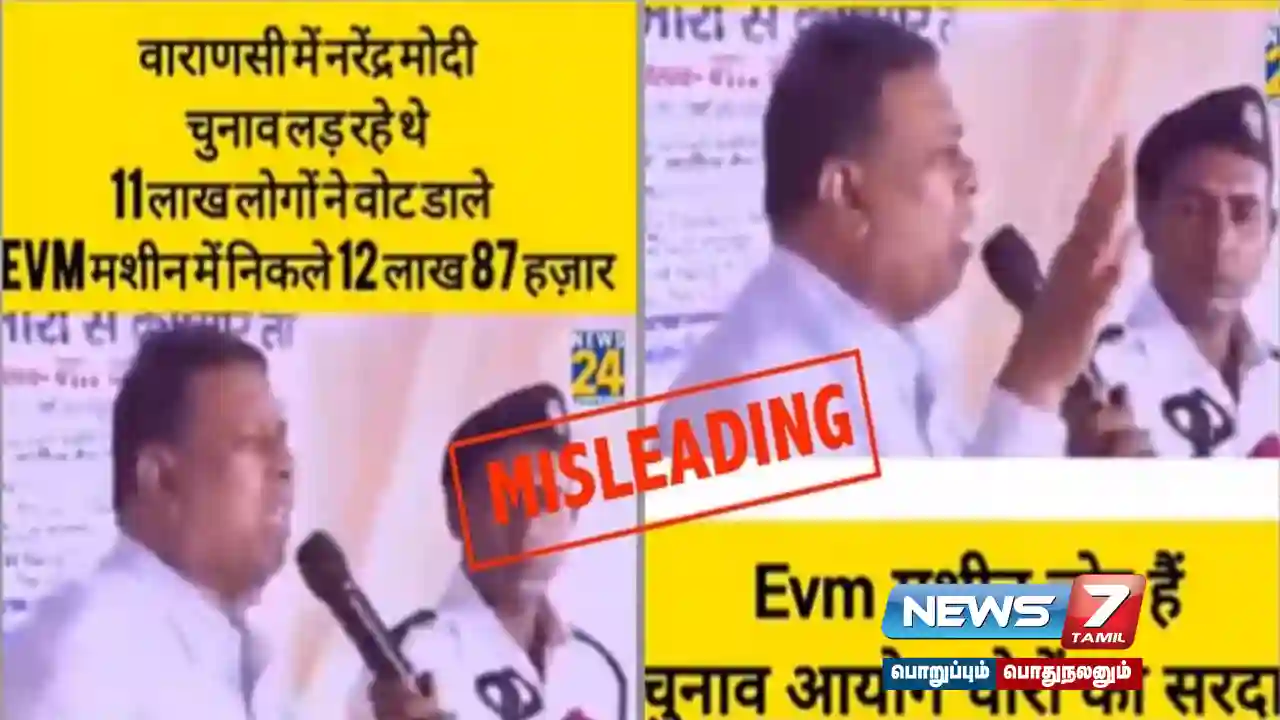 இது 7 ஏப்ரல் 2024 அன்று வெளியிடப்பட்டது அதில், வைரலாகு பதிவு தவறாக வழிநடத்துகிறது மற்றும் அது போலியானது. வாரணாசியில் மொத்த வாக்காளர்கள் 18,56,791. மொத்தம் பதிவான வாக்குகள் EVM-10,58,744 மற்றும் அஞ்சல் வாக்குகள்-2085.