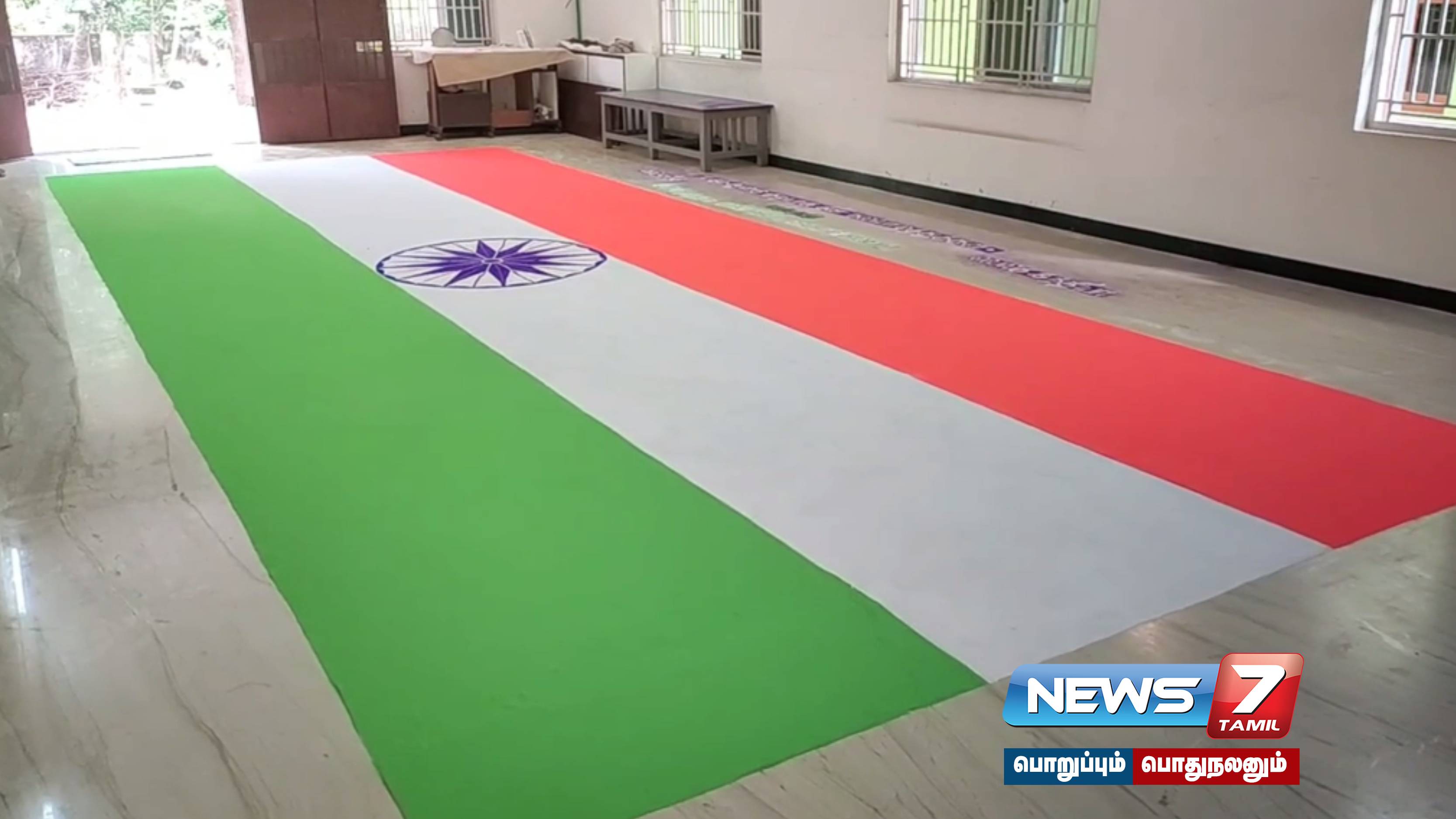 கோலமாவை கொண்டு 7 மணிநேரத்தில், 30 அடி நீளமுள்ள தேசிய கொடியை வரைந்து சகோதரிகள் இருவர் சாதனை படத்துள்ளனர்.இவர்களின் இந்த செயல் அப்பகுதி மக்களிடையே ஆச்சரியத்தை ஏற்படுத்தியுள்ளது.