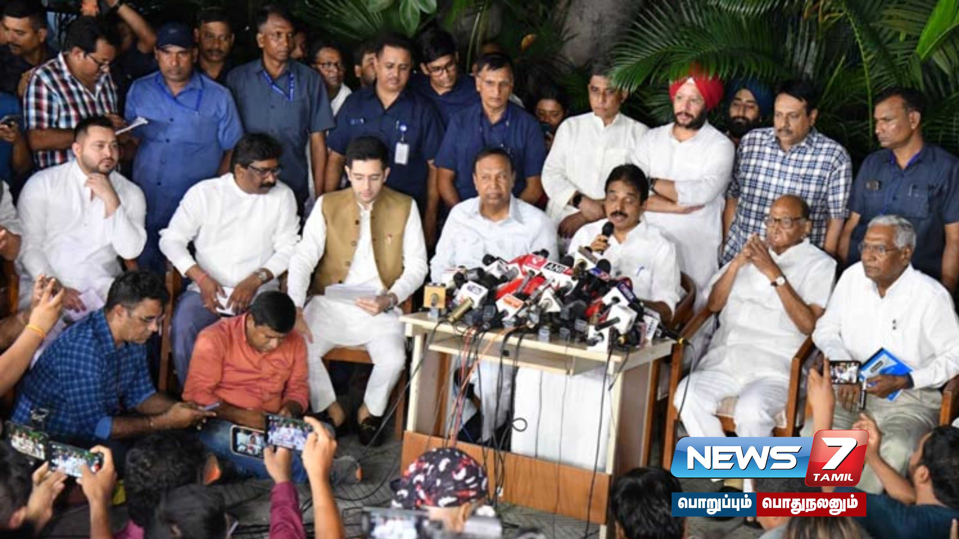 இந்த குழுவில் காங்கிரஸ் பொதுச்செயலாளர் வேணுகோபால், தேசியவாத காங்கிரஸ் தலைவர் சரத்பவார், பாராளுமன்ற தி.மு.க. குழுத் தலைவர் டி.ஆர்.பாலு, தேஜஸ்வி யாதவ் உள்ளிட்டோர் இடம்பெற்றுள்ளனர்.