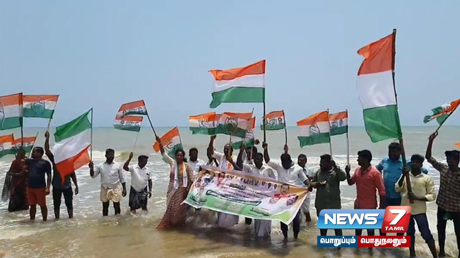 மீனவர் காங்கிரஸ் சார்பாக கடலில் இறங்கும் போராட்டம் நடைபெற்றது.