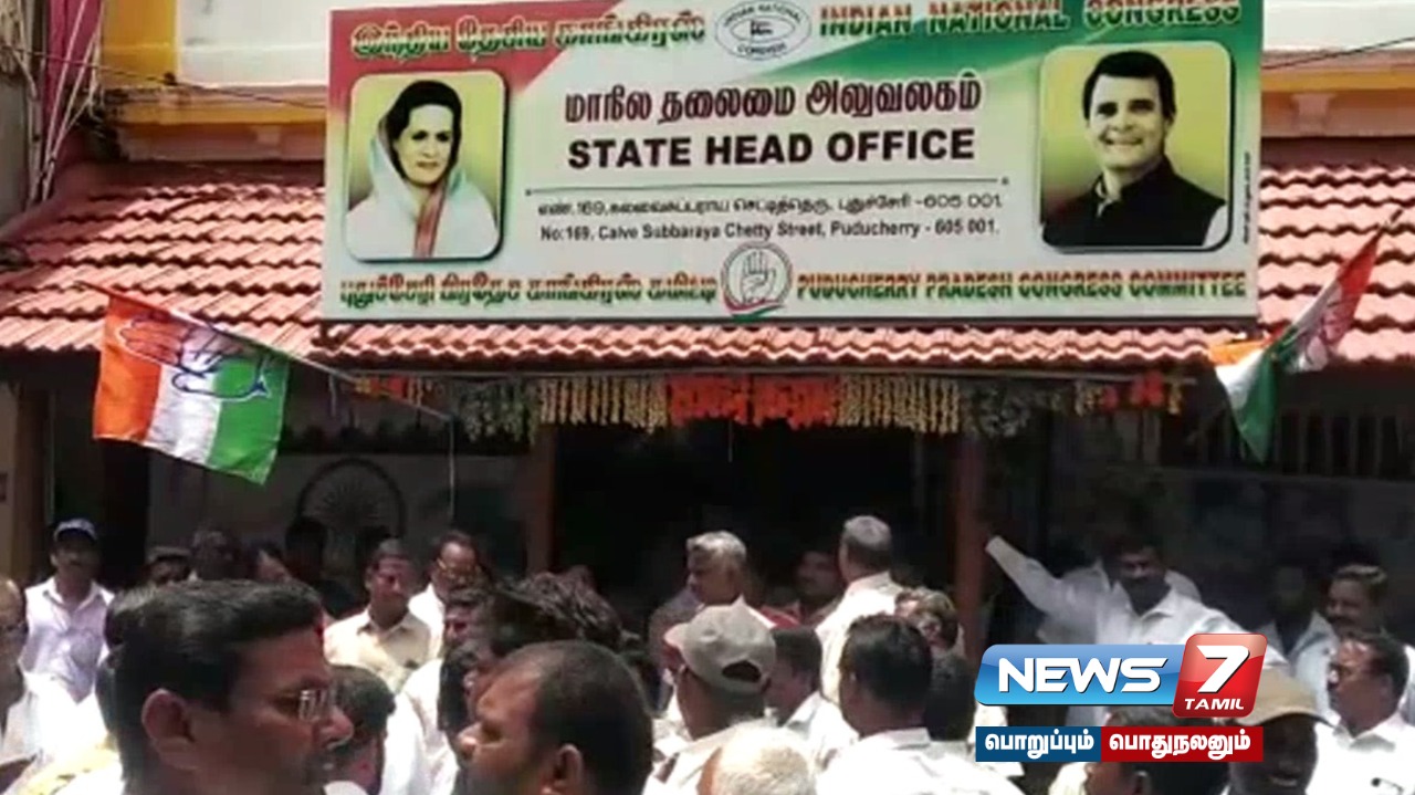 அப்போது புதுச்சேரி மாநில காங்கிரஸ் கட்சி தலைவரை மாற்ற வேண்டுமென ஒரு தரப்பினர் கூச்சலிட்டனர். இதனால் அமளி ஏற்பட்டதால், முன்னாள் முதல்வர் நாராயணசாமி காங்கிரஸ் கட்சி அலுவலகத்திலிருந்து புறப்பட்டு சென்றார்.