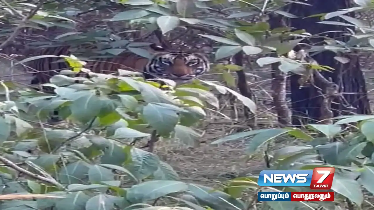 பரபரப்பு ஏற்பட்டது. இருப்பினும், ஜீப் ஓட்டுநர் மிகவும் திறமையாக புலியிடமிருந்து சுற்றுலா பயணிகளை பாதுகாத்து அழைத்து வந்தார். இதனை வாகனத்தில் சென்ற சுற்றுலா பயணி ஒருவர் தனது செல்போனில் பதிவு செய்துள்ளார்.