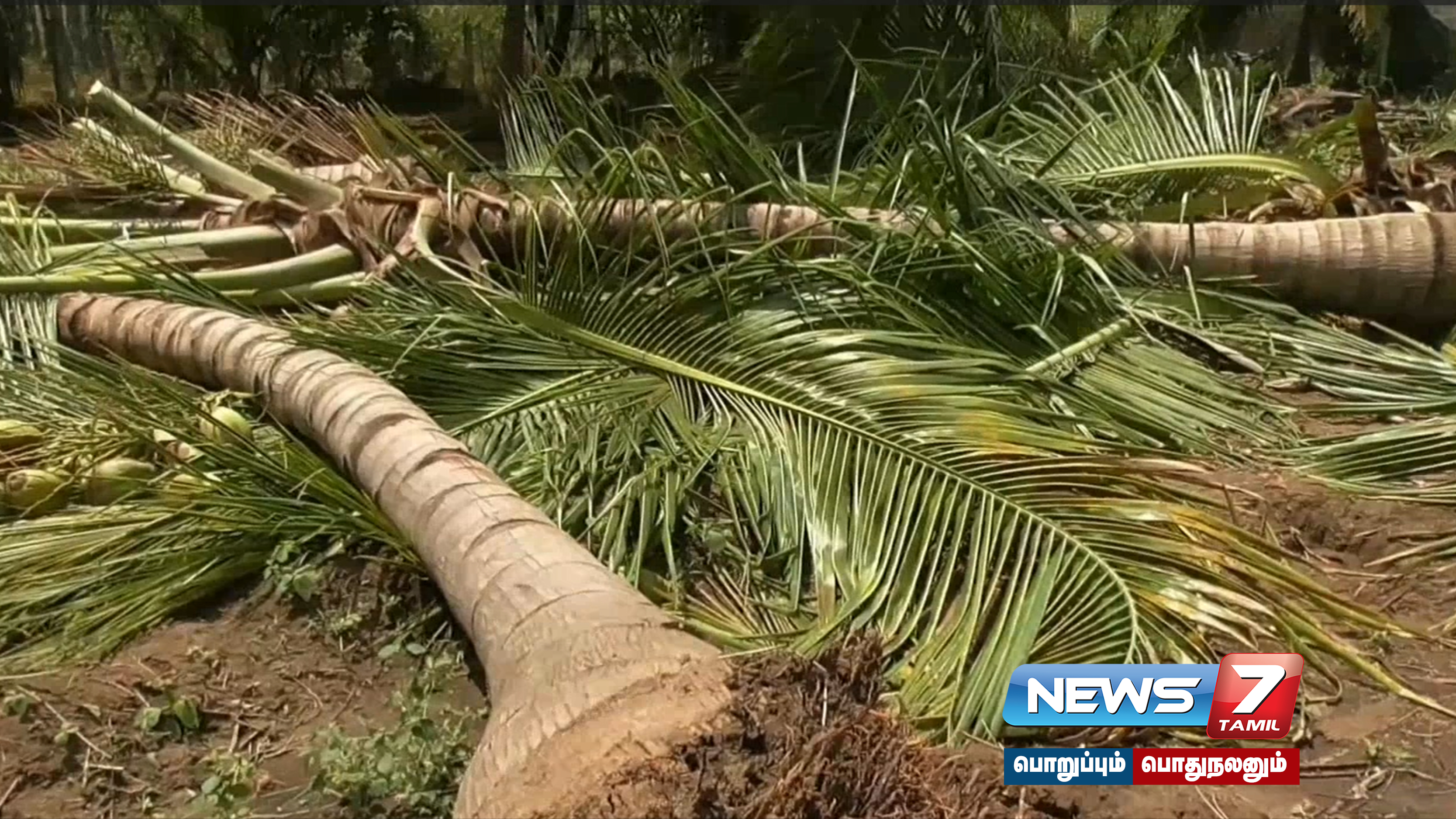 மேலும் மின் கம்பங்களும் ஒடிந்து விழுந்தது. நல்வாய்ப்பாக முன்கூட்டியே மின் விநியோகம் நிறுத்தப்பட்டதால் அசம்பாவிதம் ஏற்படுவது தவிர்க்கப்பட்டது. தென்னை மரங்கள் வேரோடு விழுந்ததால் பல வருடங்களாக தென்னை மரங்களை வளர்த்து பராமரித்து வந்த விவசாயிகளுக்கு பல லட்சம் ரூபாய் இழப்பு ஏற்பட்டுள்ளது.