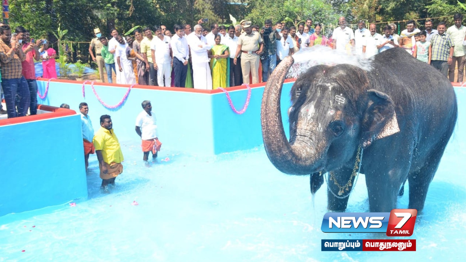 கோவை பேரூர் பட்டீசுவர சுவாமி திருக்கோவிலில் உள்ள யானைக்கு புதிதாக கட்டப்பட்ட குளியல் தொட்டியை இந்து சமய அறநிலையத் துறை அமைச்சர் சேகர் பாபு திறந்து வைத்தார்.