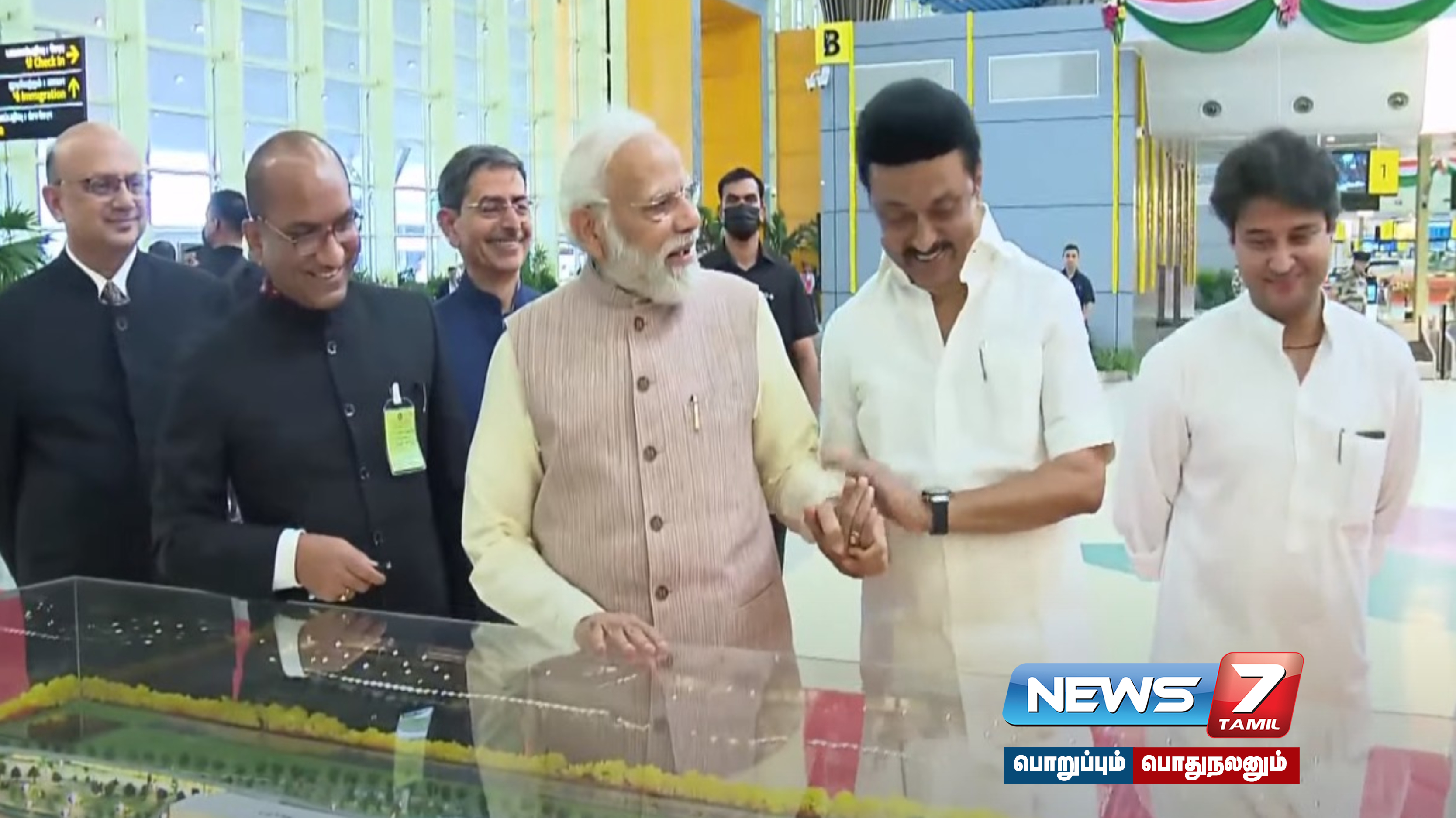 இதன் பின்னர் முதலமைச்சர் மு.க.ஸ்டாலின் , ஆளுநர் ரவி , விமானப் போக்குவத்துறை அமைச்சர் ஜோதிராதித்ய சிந்தியா, மத்திய இணையமைச்சர் எல்.முருகன் உள்ளிட்டோர் பிரதமர் நரேந்திர மோடியுடன் புதிய பன்னாட்டு முனையத்தை பார்வையிட்டனர்.