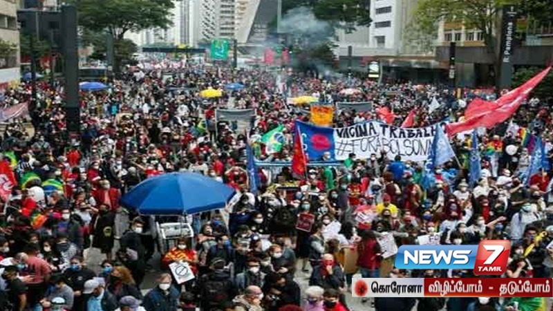 தொடர்ந்து அதிகரித்து வரும் கொரோனா மரணங்களால் கோபமுற்ற மக்கள் அந்நாட்டின் முக்கிய நகரங்களில் போராட்டத்தில் ஈடுபட்டு வருகின்றன. போராட்டத்தில் ஈடுபட்டவர்கள் டிரம்ஸ்கள் இசைத்து, கோஷங்கள் எழுப்பி அதிபர் போல்சனாரோவை பதிவி விலக வலியுறுத்தி வருகின்றனர்.