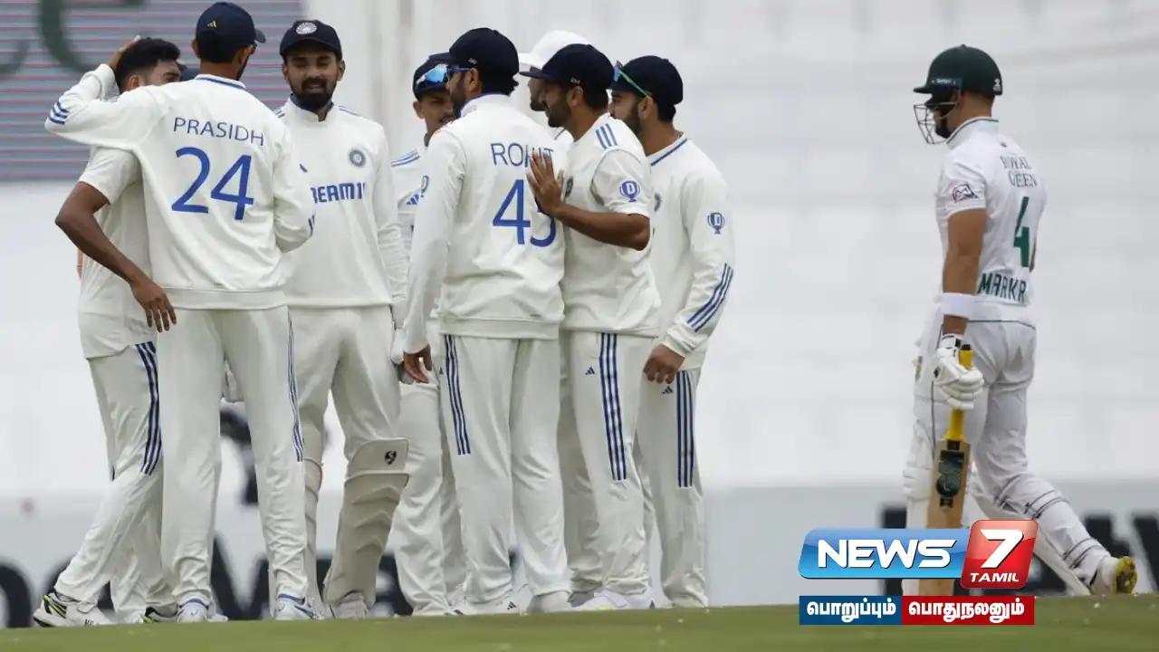 இந்தியா மற்றும் தென்னாப்பிரிக்க அணிகளுக்கிடையே முதலாவது டெஸ்ட் போட்டி நேற்று (டிச.26) தொடங்கிய நிலையில் டாஸ் வென்று பந்துவீச்சை தென்னாப்பிரிக்க அணி தேர்வு செய்தது. இதையடுத்து இந்திய அணி பேட்டிங் செய்ய களத்தில் இறங்கியது. கேப்டன் ரோகித் சர்மா ஐந்து ரன்களில் அவுட் ஆக அதனை அடுத்து சுப்மன் கில் இரண்டு ரன்களில் அவுட்டானார். இதனையடுத்து ஜெயஸ்வால் 17 ரன்களிலும், ஸ்ரேயாஸ் ஐயர் 31 ரன்களில் அவுட் ஆகினர். நிதானமாக விளையாடிய கோலி 38 ரன்களில் ஆட்டமிழந்தார்.